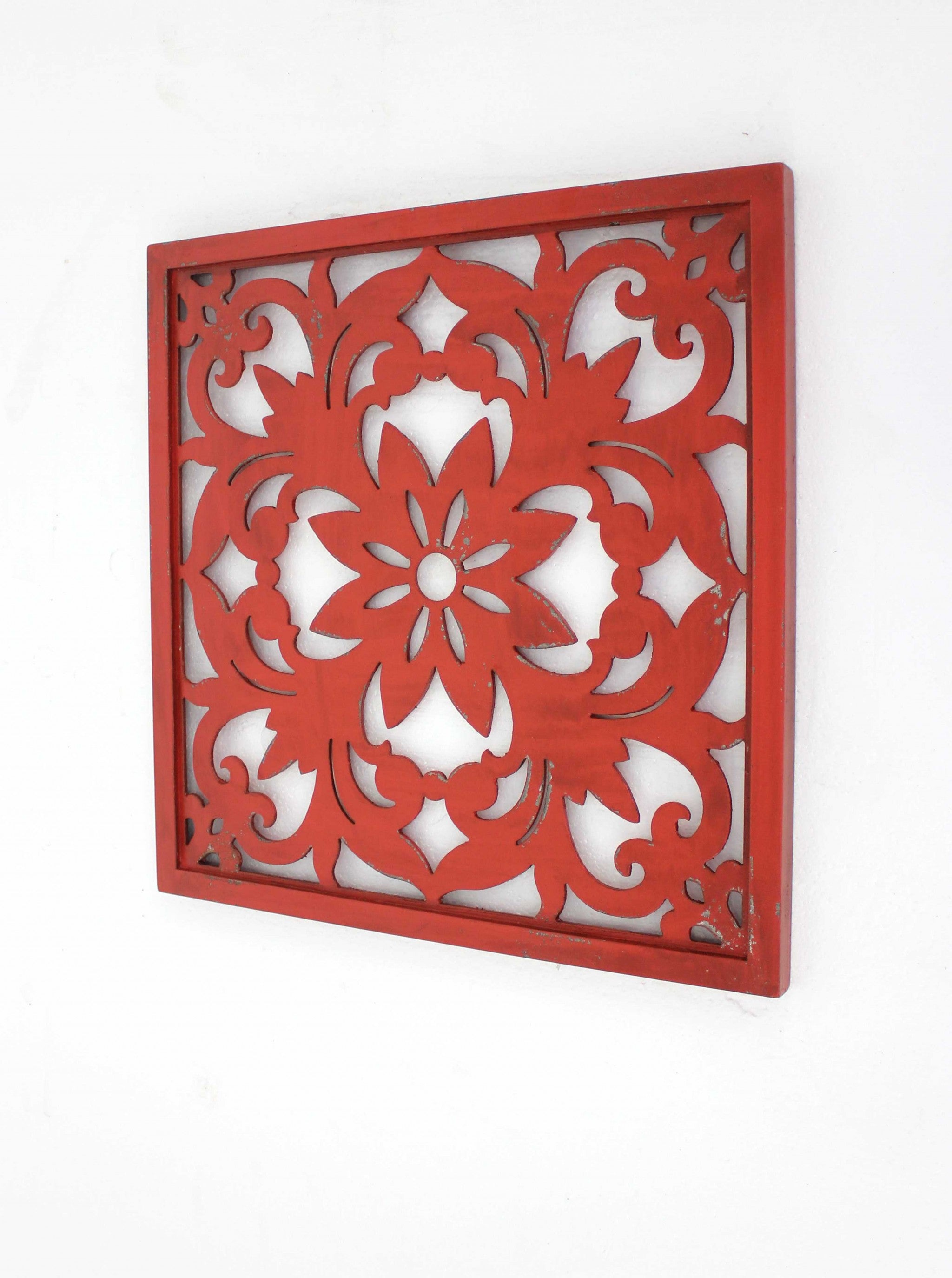 1 X 24 X 24 Red Vintage Floral - Wall Plaque