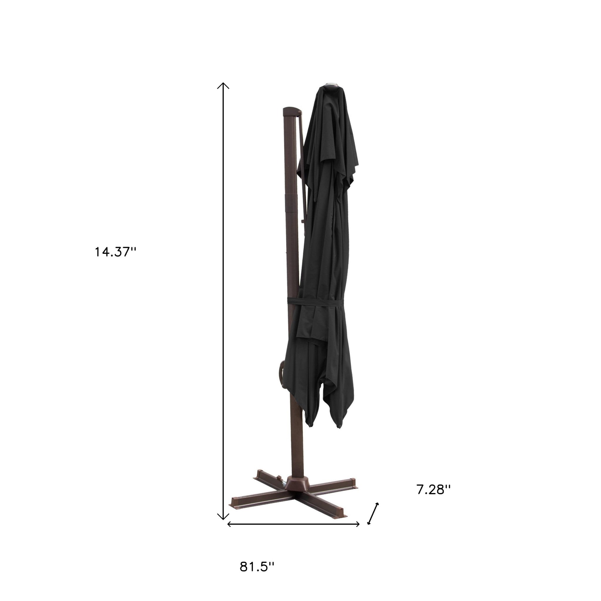 10' Black Polyester Square Tilt Cantilever Patio Umbrella With Stand