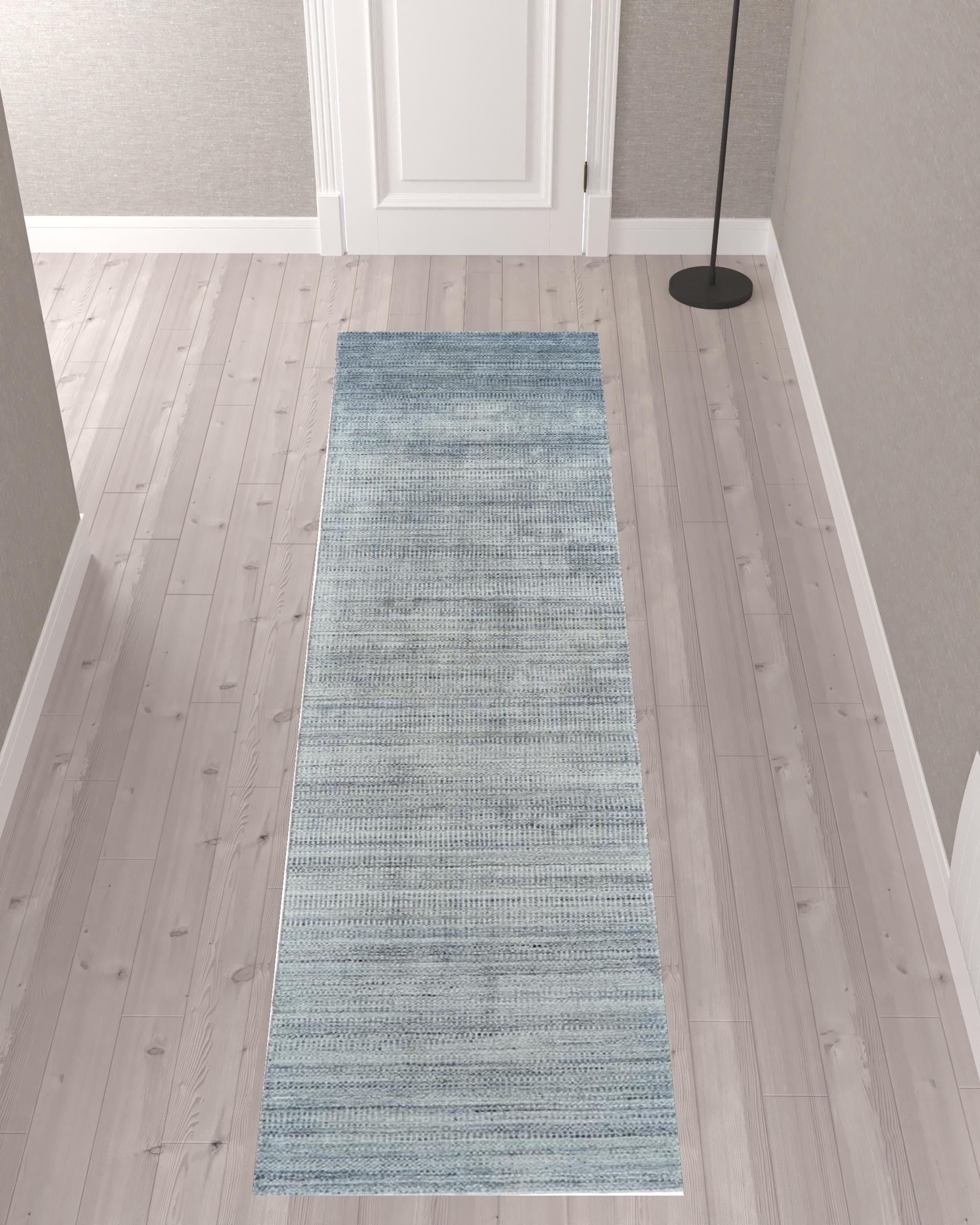 10' Blue and Gray Ombre Hand Woven Runner Rug