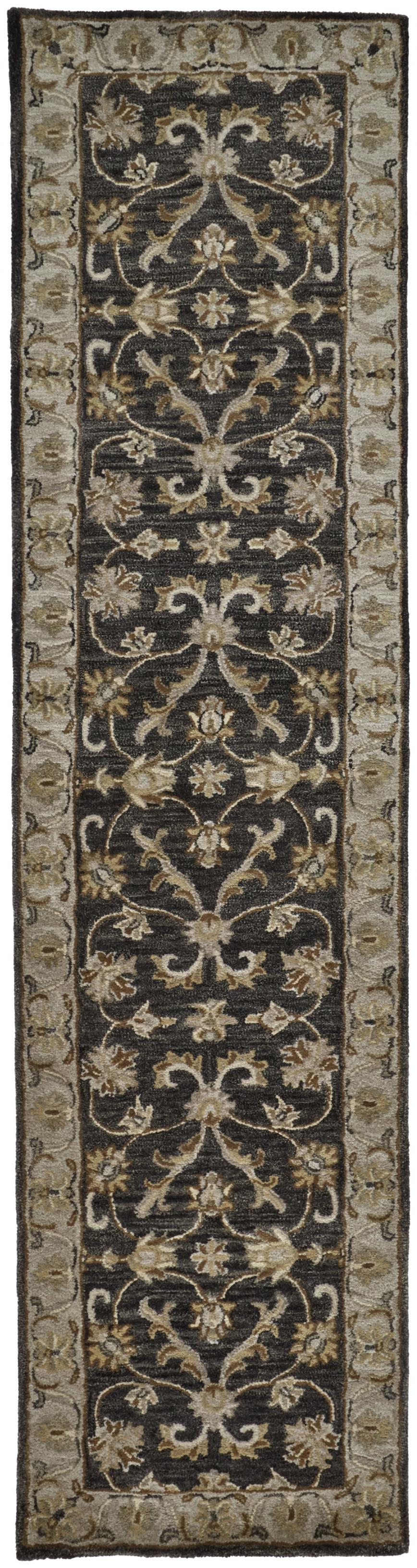 10' Blue Gray And Taupe Wool Floral Tufted Handmade Stain Resistant Runner Rug