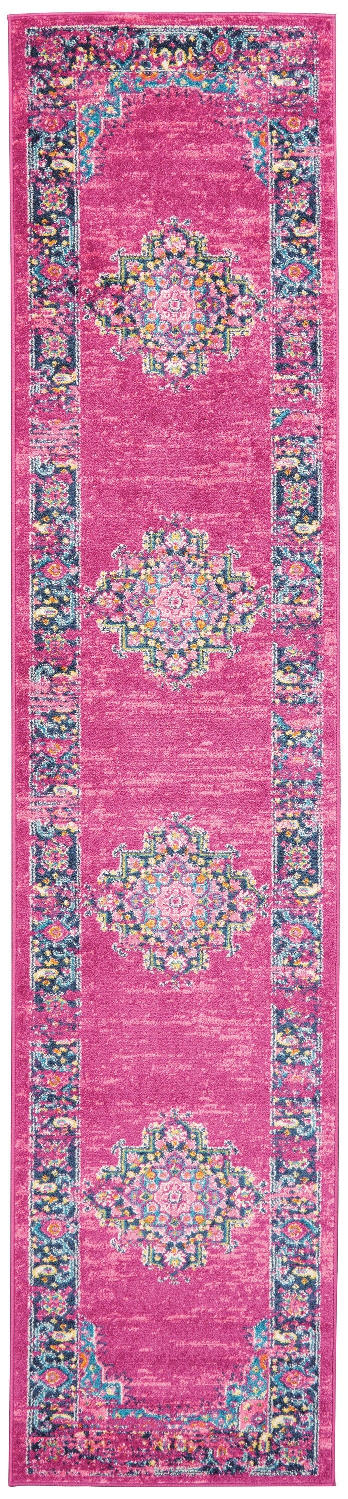 Add great coloration and comfortable texture to your space with this 10' fuchsia power loom runner rug....