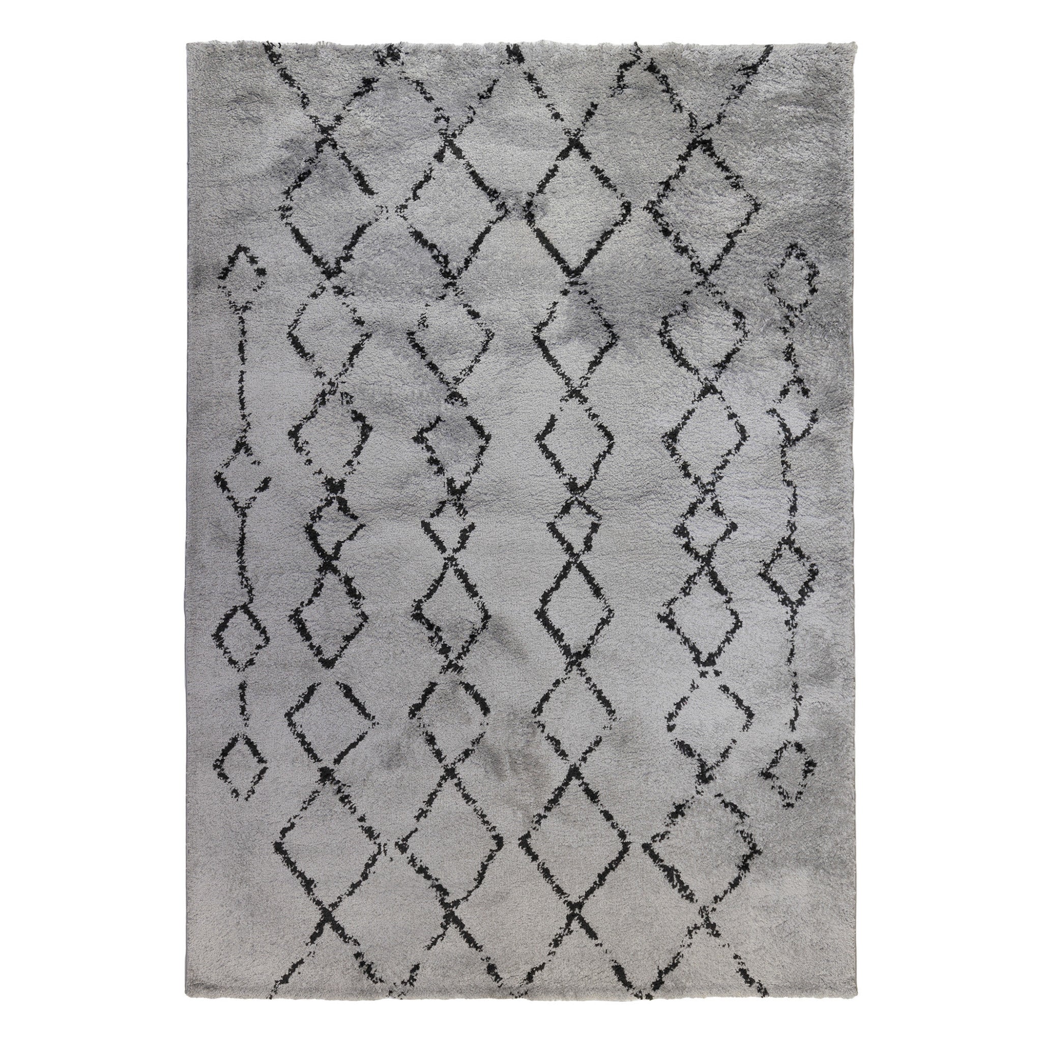 Set an inviting tone in your space with this 10 feet gray and black geometric shag runner...