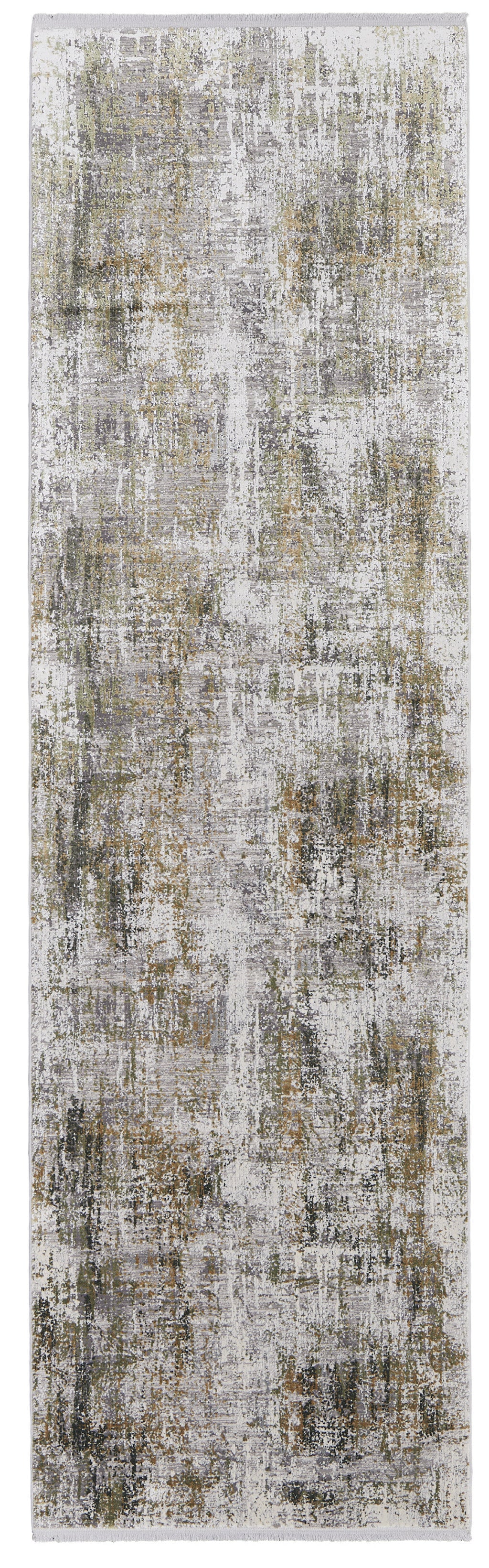 This 10-foot gray and ivory abstract power loom runner rug with fringe, is a great way to...