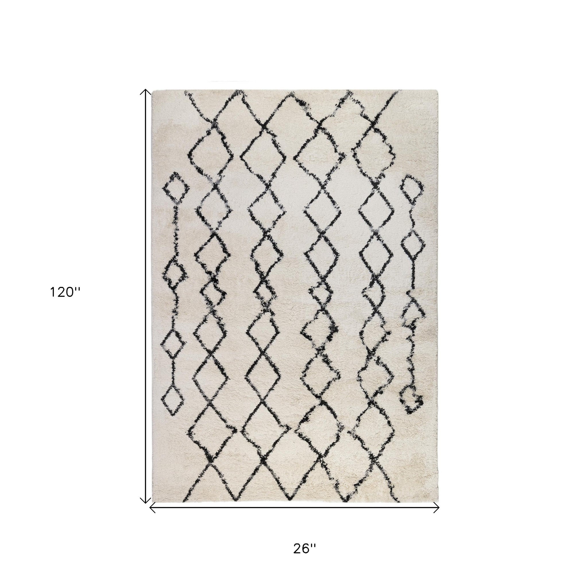 Set an inviting tone in your space with this 10 feet gray and ivory geometric shag runner...