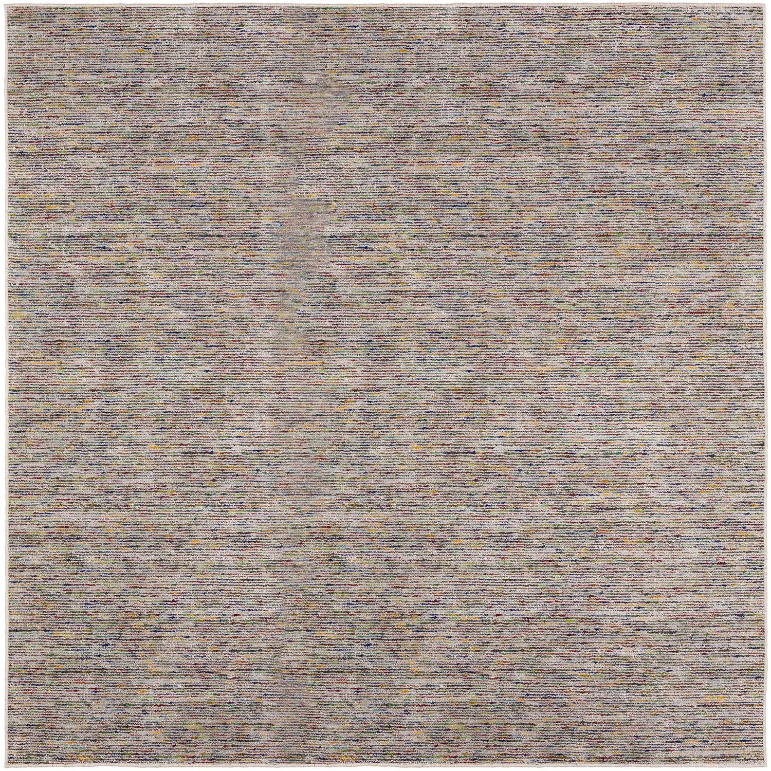 Add some artistry to your room with this 10' grey blue and yellow square wool hand loomed...
