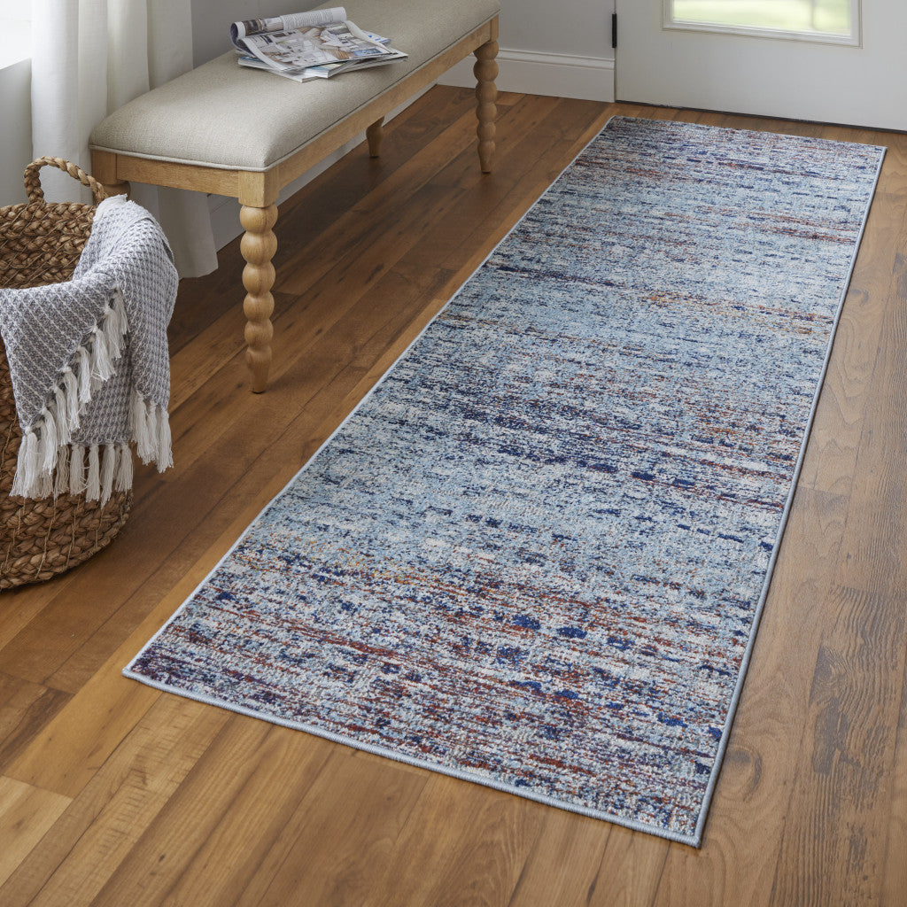 10' Ivory Blue and Orange Abstract Power Loom Runner Rug
