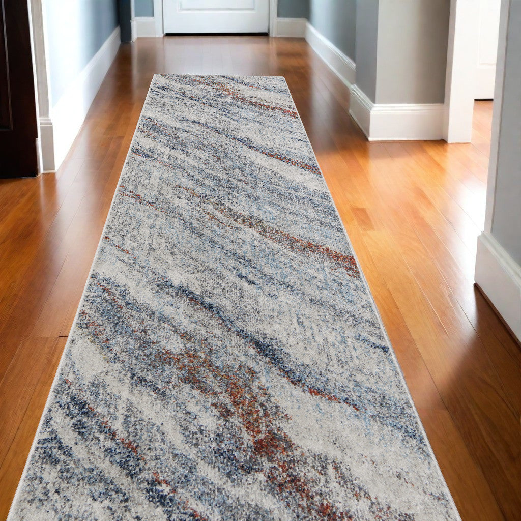 10' Ivory Blue and Orange Abstract Power Loom Runner Rug