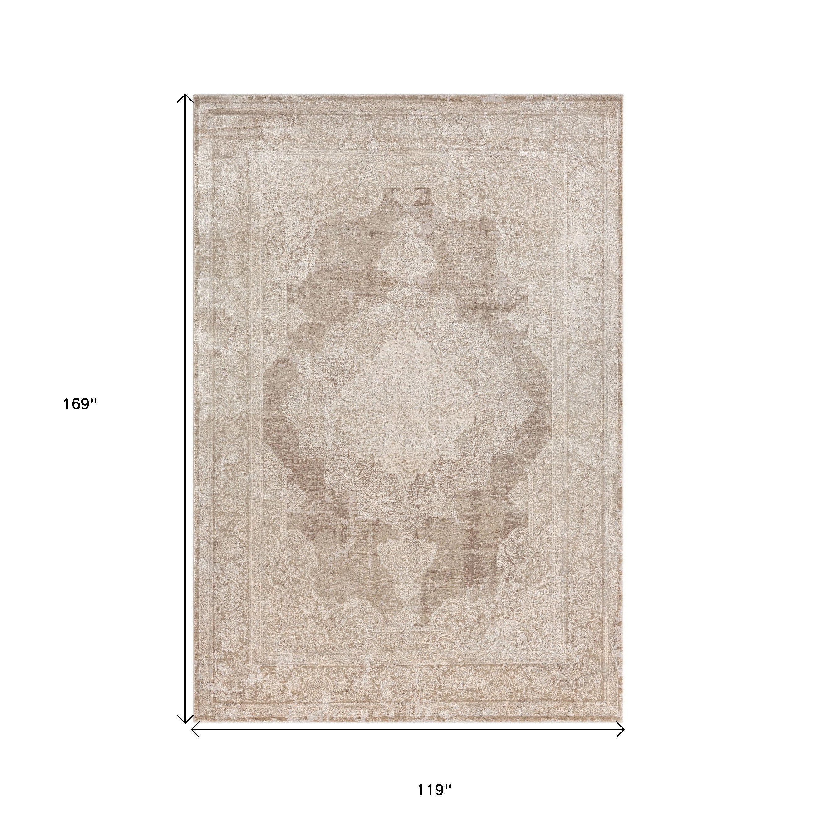 Add some artistry to your room with this 10-foot x 14-foot beige and ivory medallion area rug....