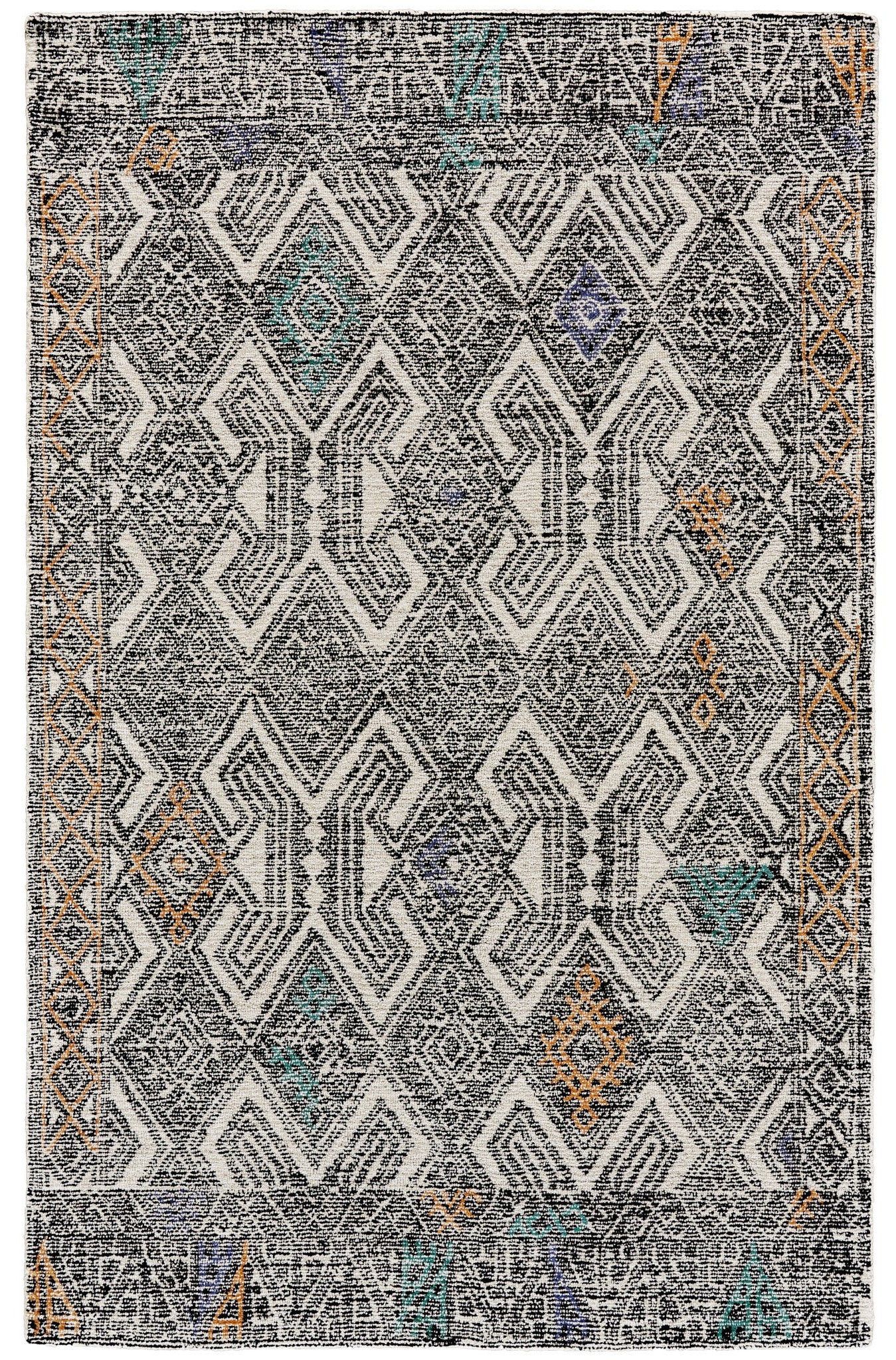 10' x 14' Black and Ivory Wool Chevron Hand Tufted Distressed Area Rug