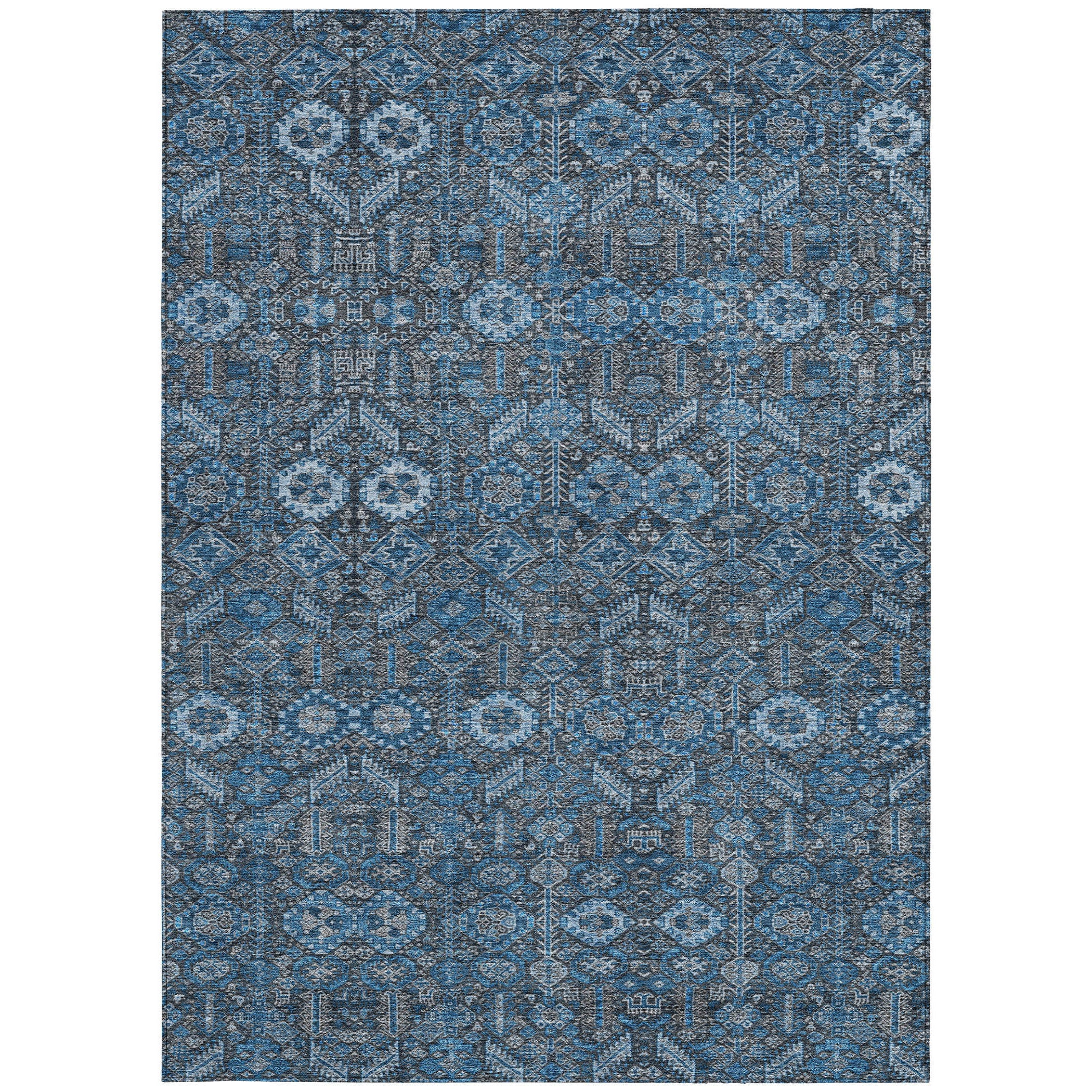 10' X 14' Blue and Black Floral Washable Non Skid Indoor Outdoor Area Rug