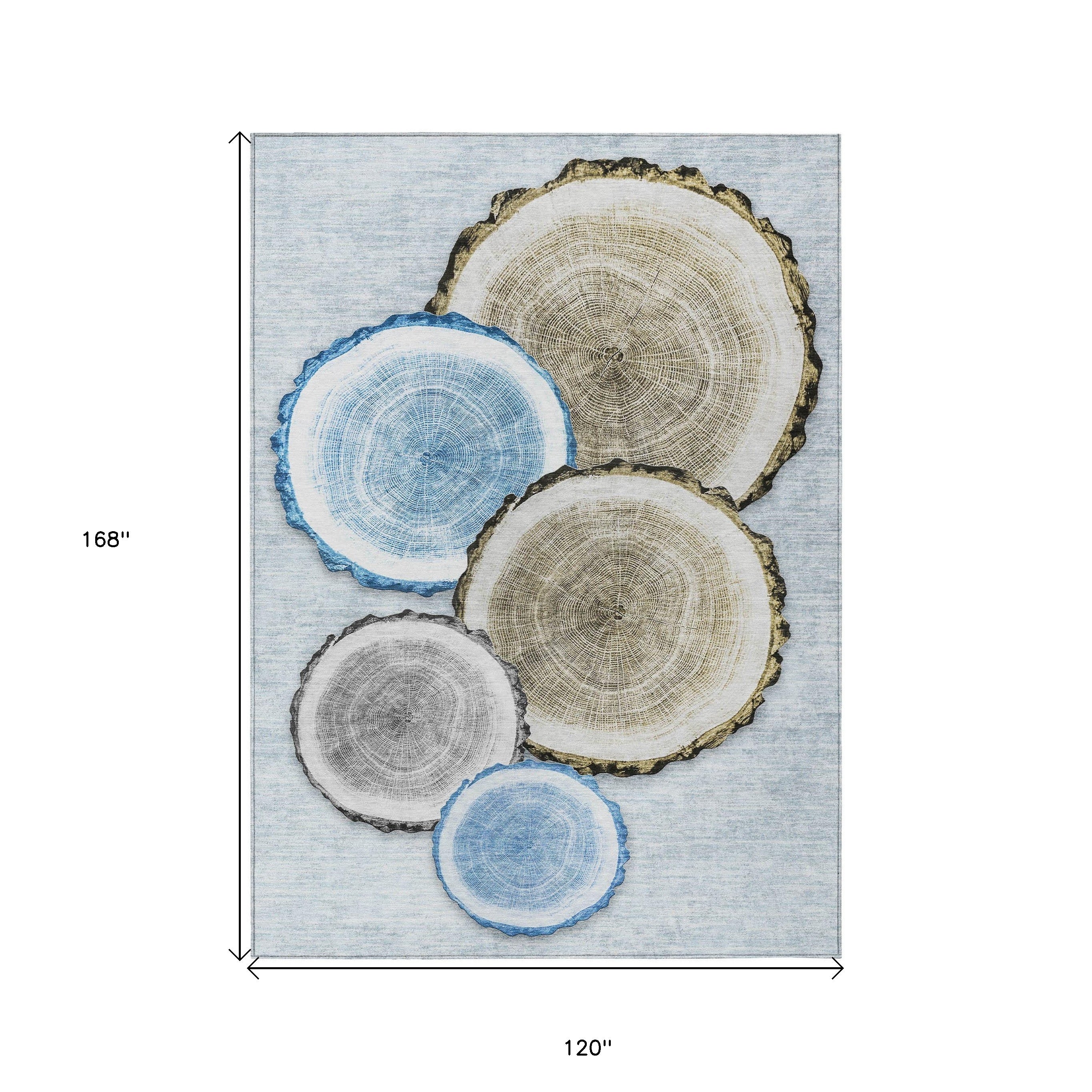 10' X 14' Blue Gold and Gray Faux Bois Washable Non Skid Indoor Outdoor Area Rug