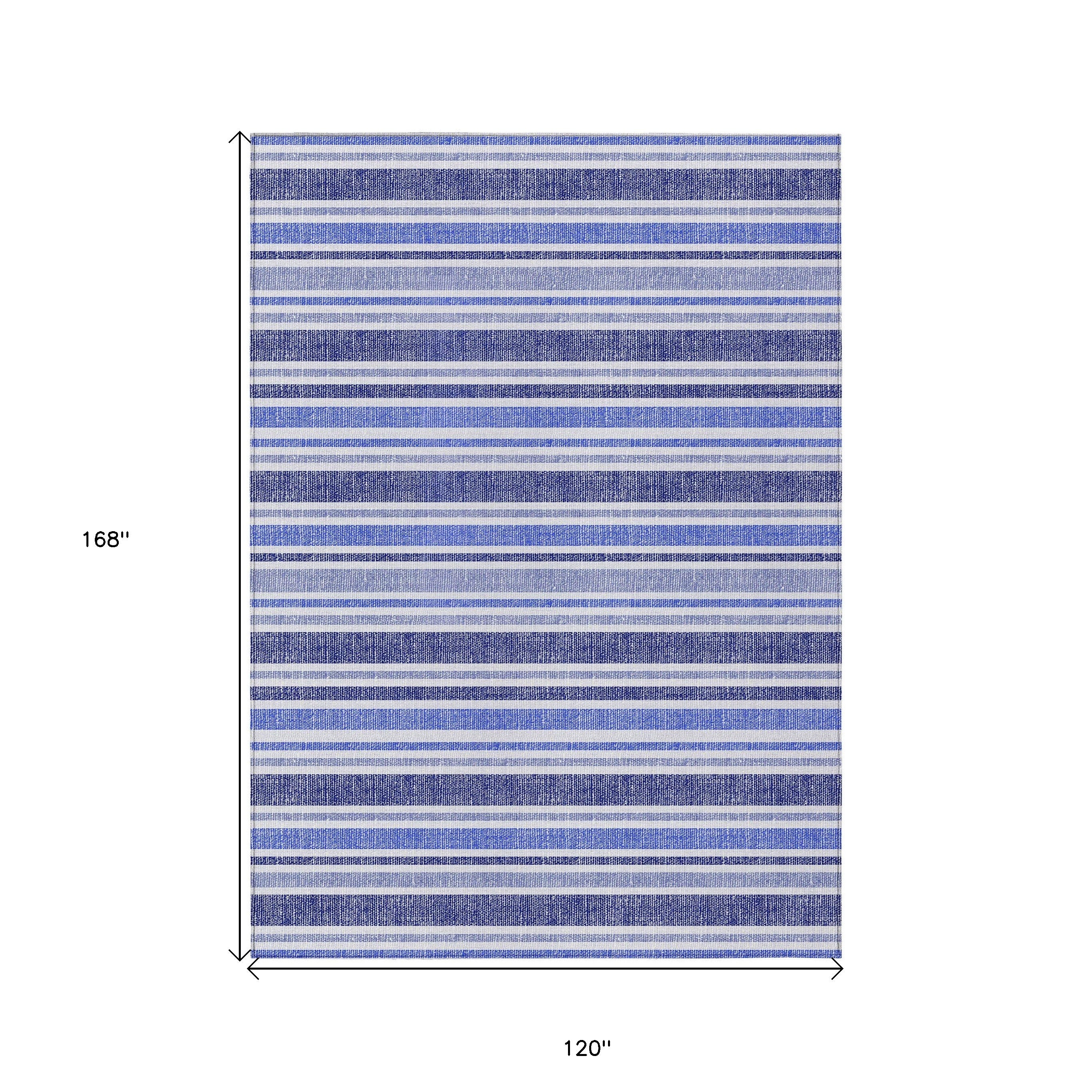 10' X 14' Blue Striped Washable Non Skid Indoor Outdoor Area Rug
