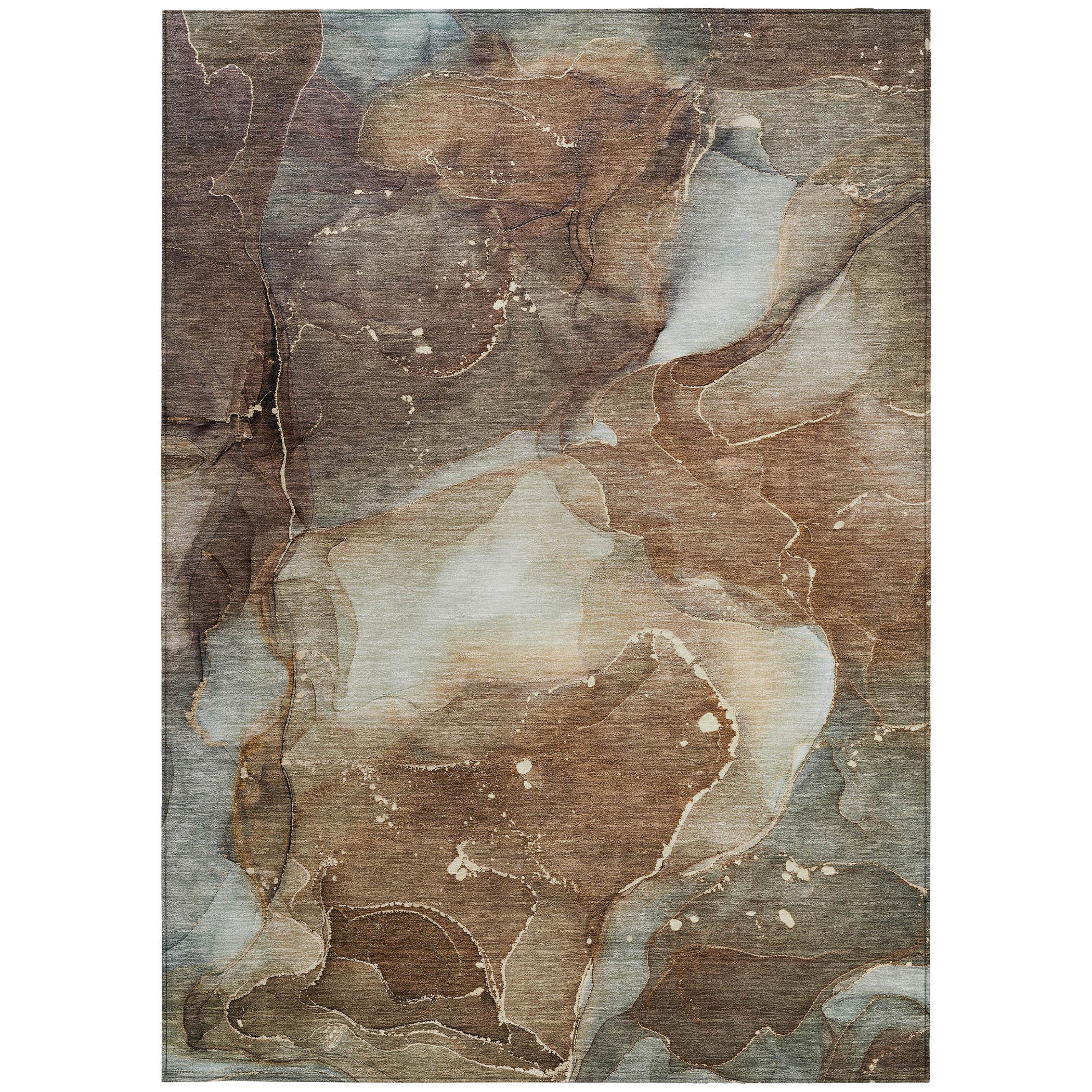 10' X 14' Brown Abstract Washable Non Skid Indoor Outdoor Area Rug