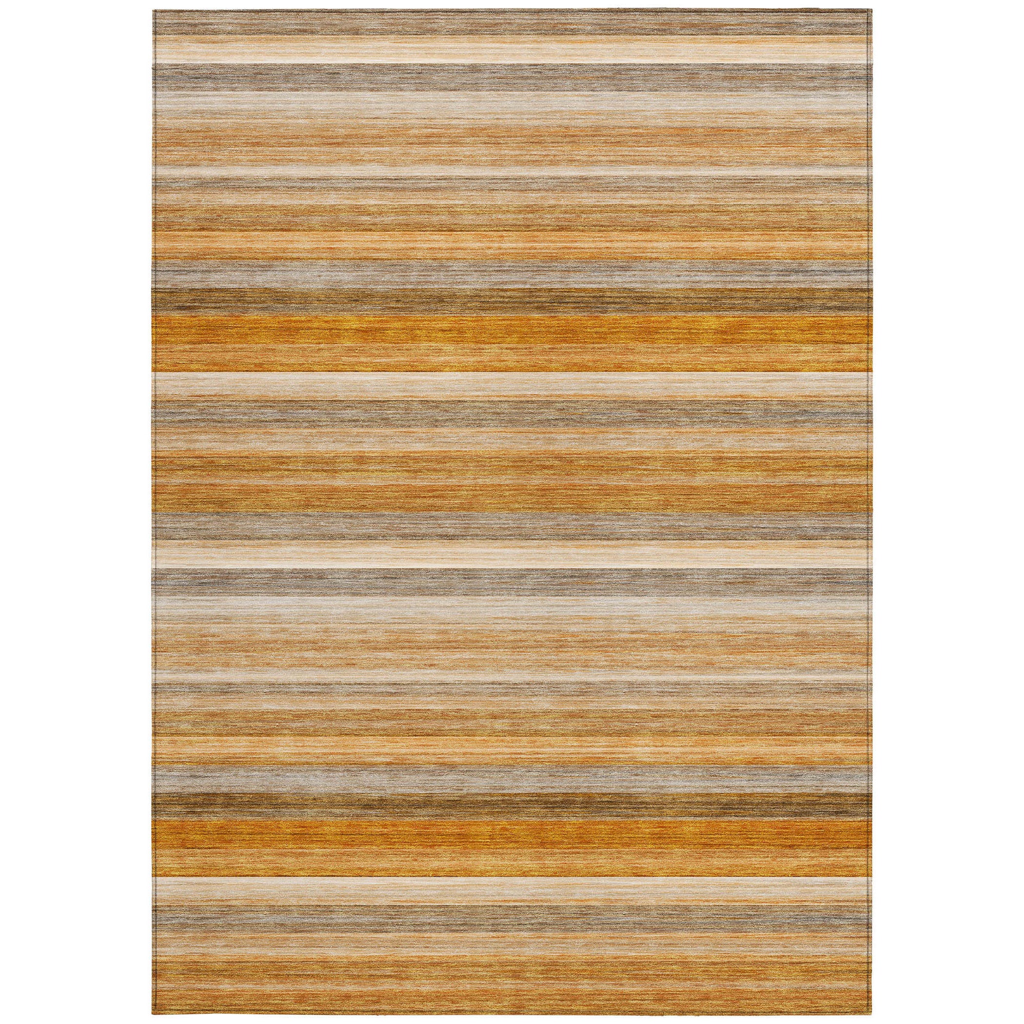 Add some artistry to your room with this 10-foot x 14-foot brown and orange striped washable stain...