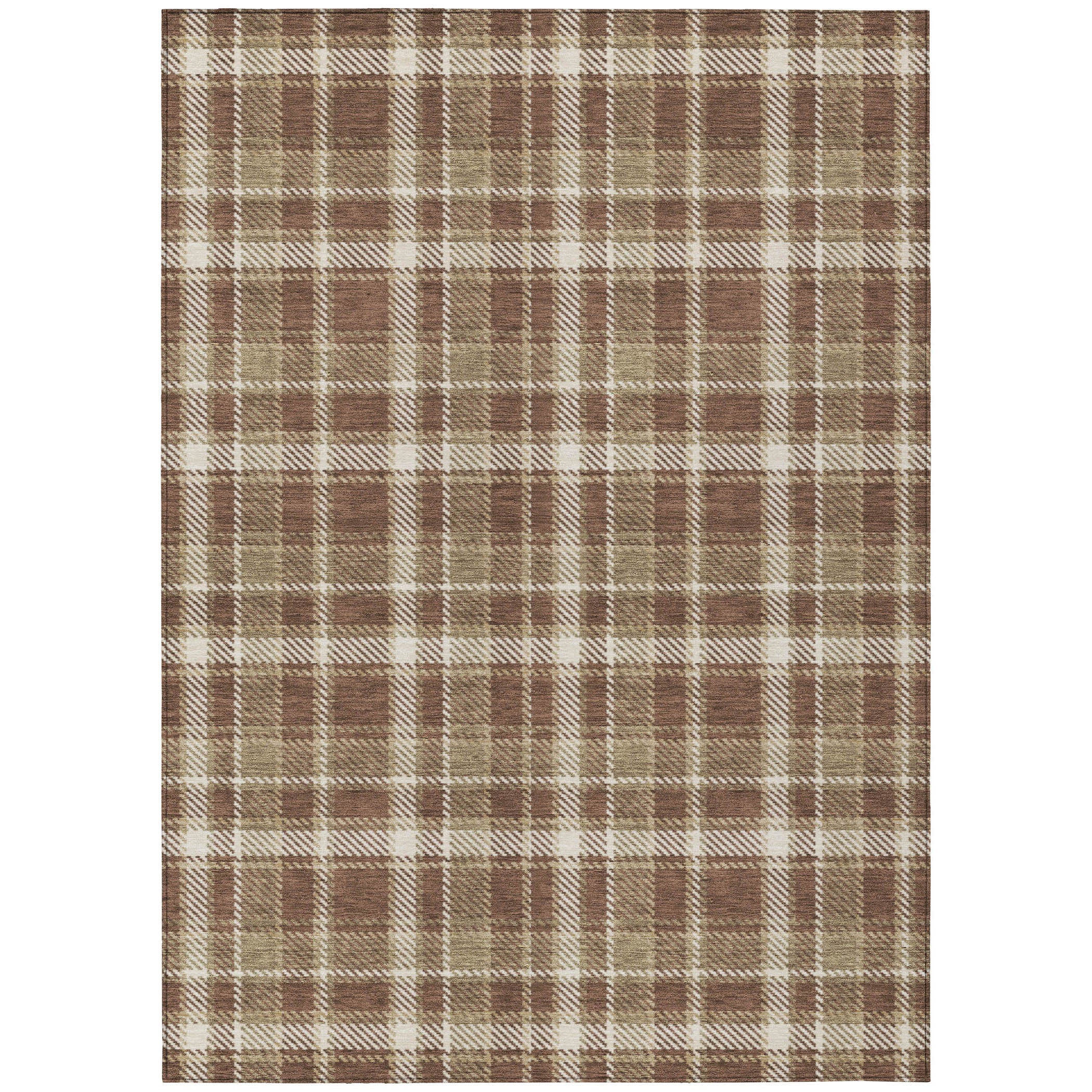 10' X 14' Chocolate and Ivory Plaid Washable Non Skid Indoor Outdoor Area Rug