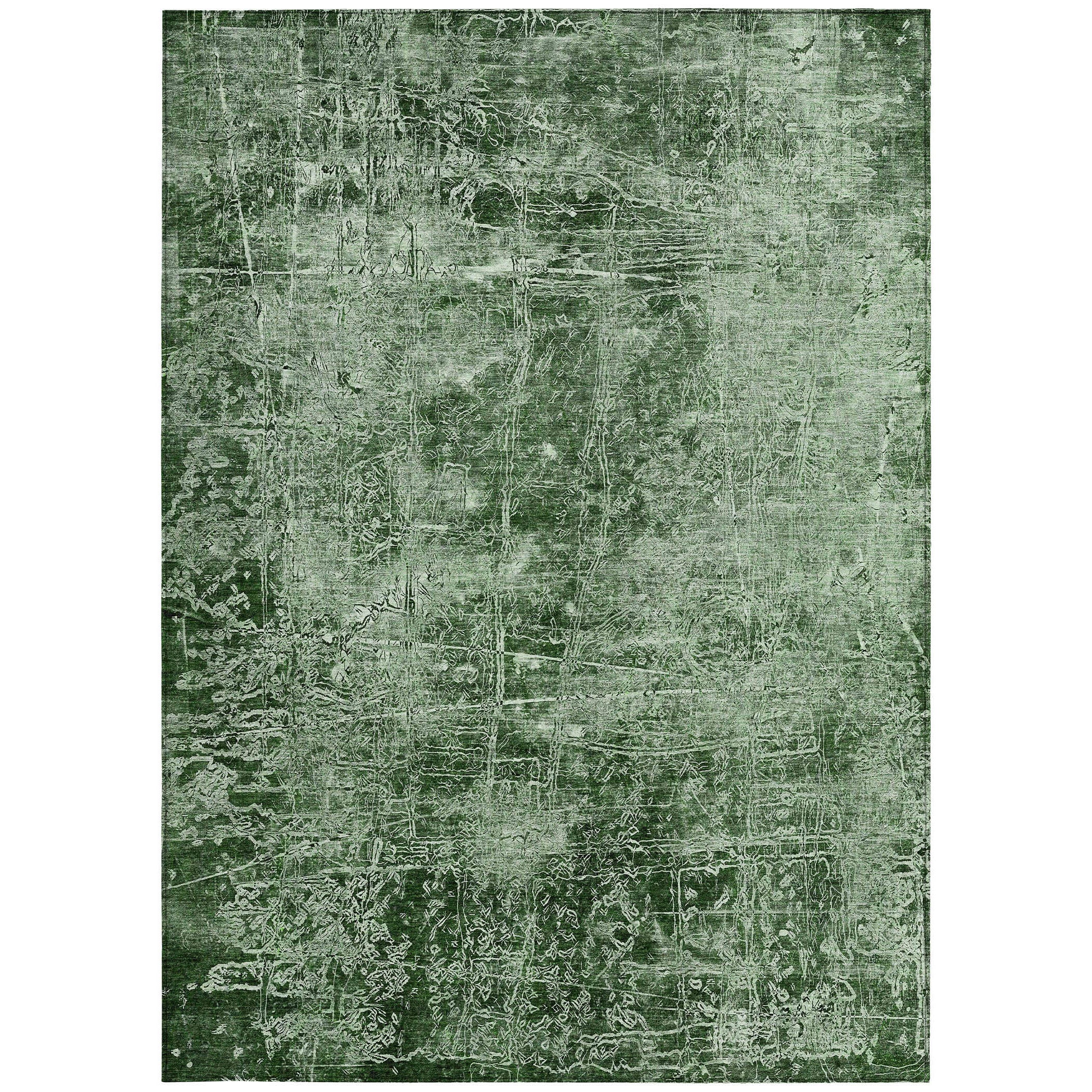 10' X 14' Emerald Abstract Washable Non Skid Indoor Outdoor Area Rug