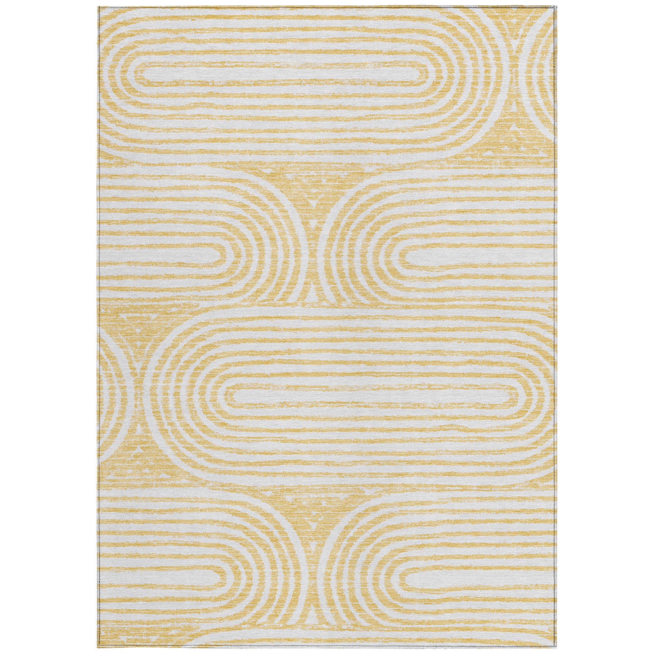 10' X 14' Gold and White Abstract Washable Non Skid Indoor Outdoor Area Rug