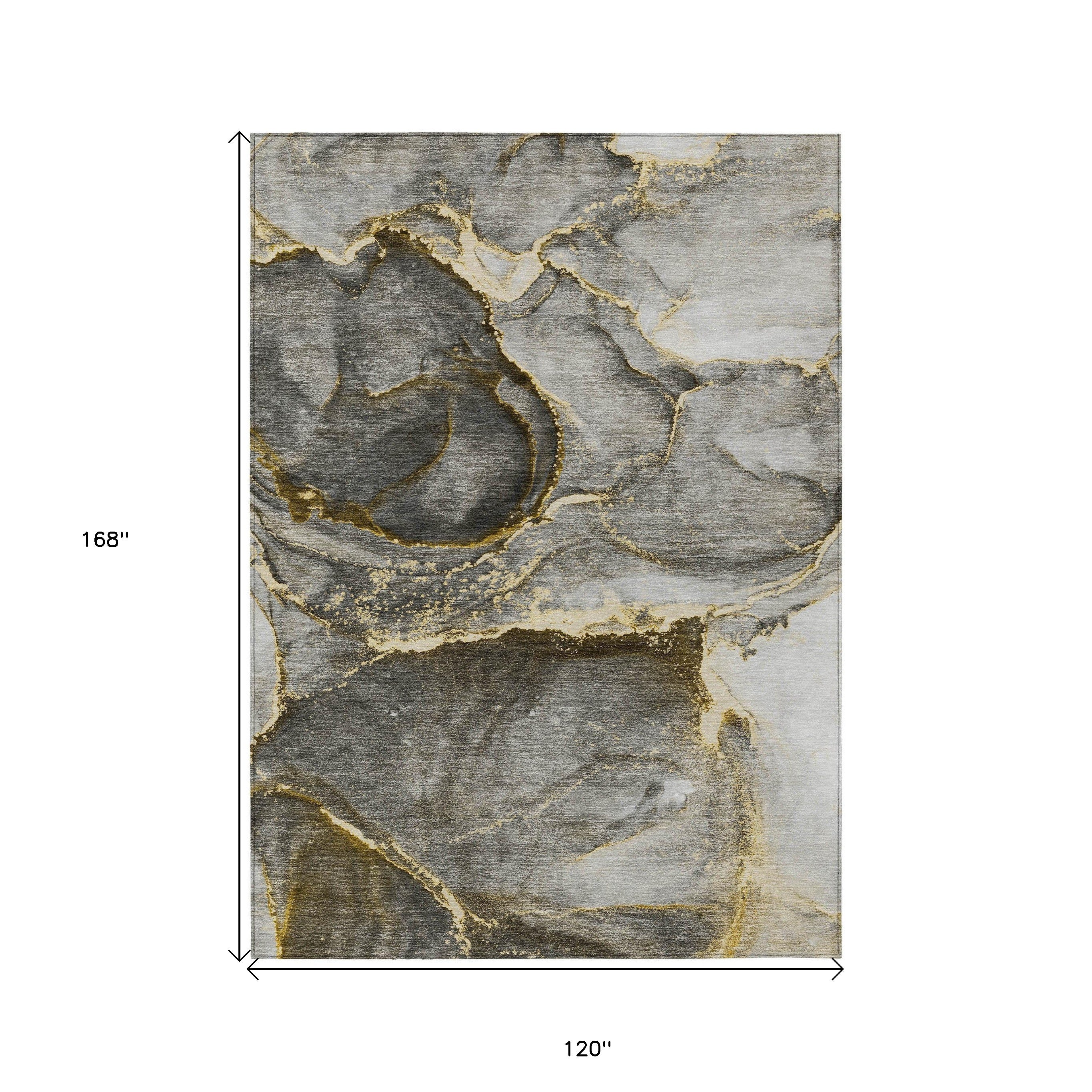 10' X 14' Gray and Gold Abstract Washable Non Skid Indoor Outdoor Area Rug