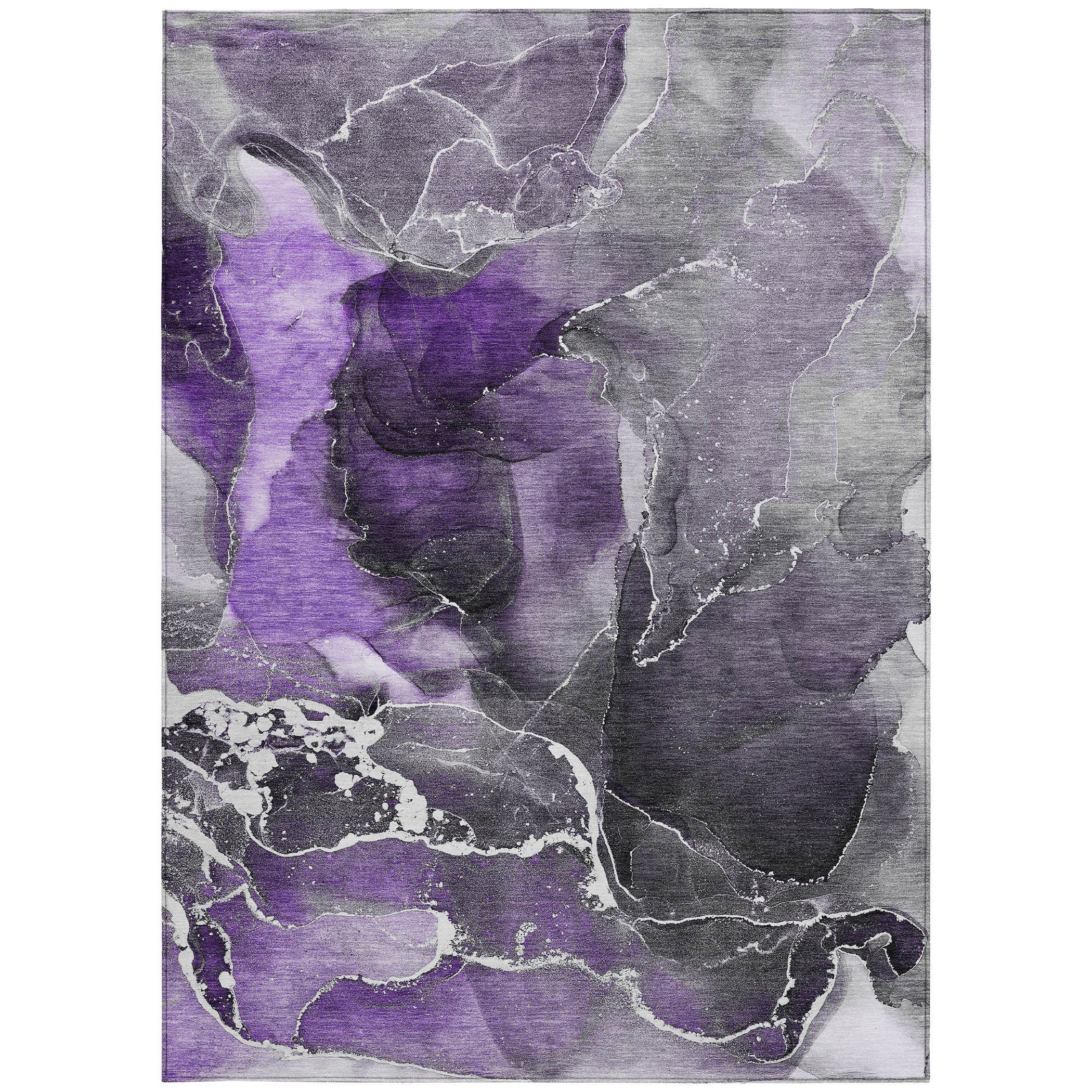 Add some artistry to your room with this 10-foot x 14-foot gray and purple abstract washable stain...