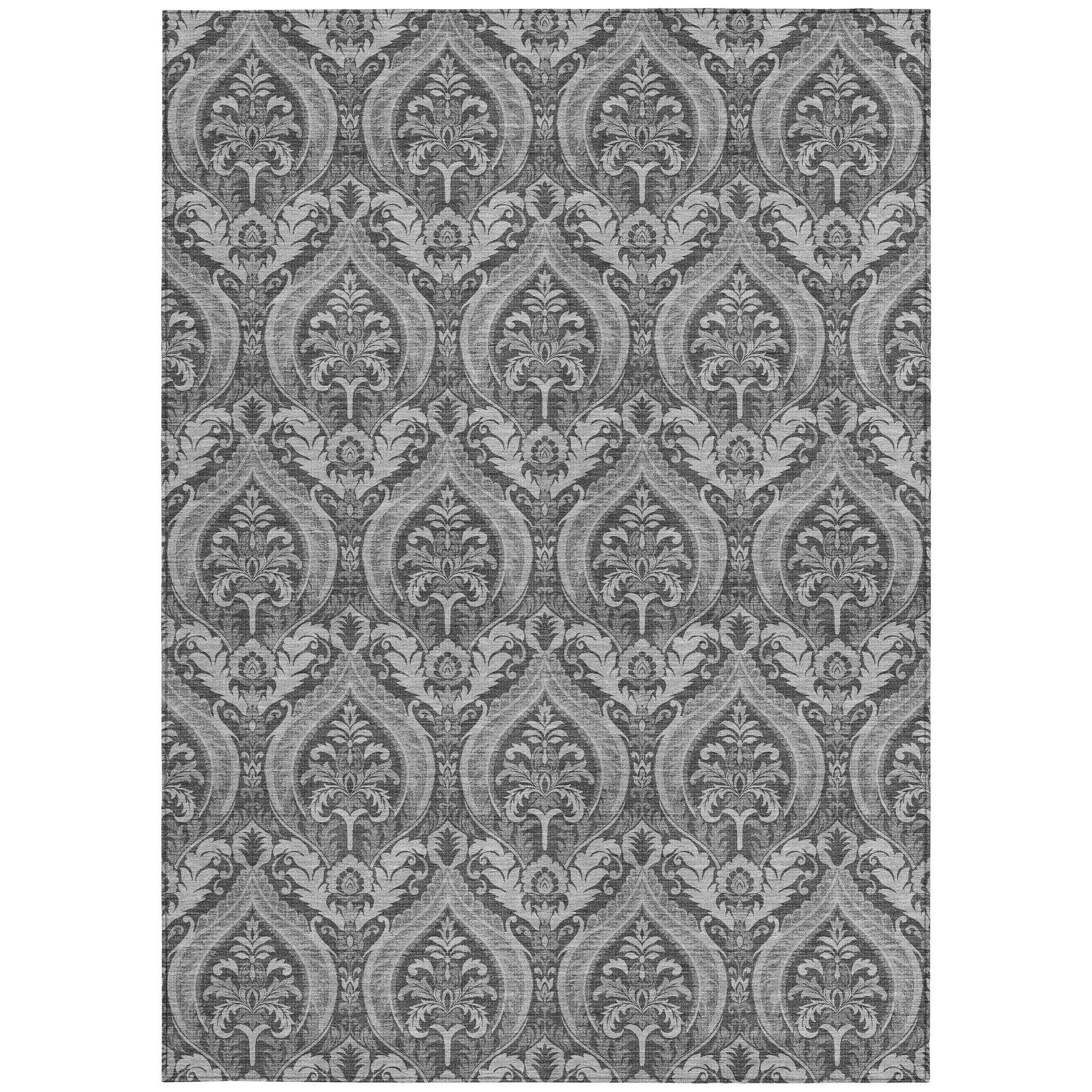 10' X 14' Gray Damask Washable Non Skid Indoor Outdoor Area Rug