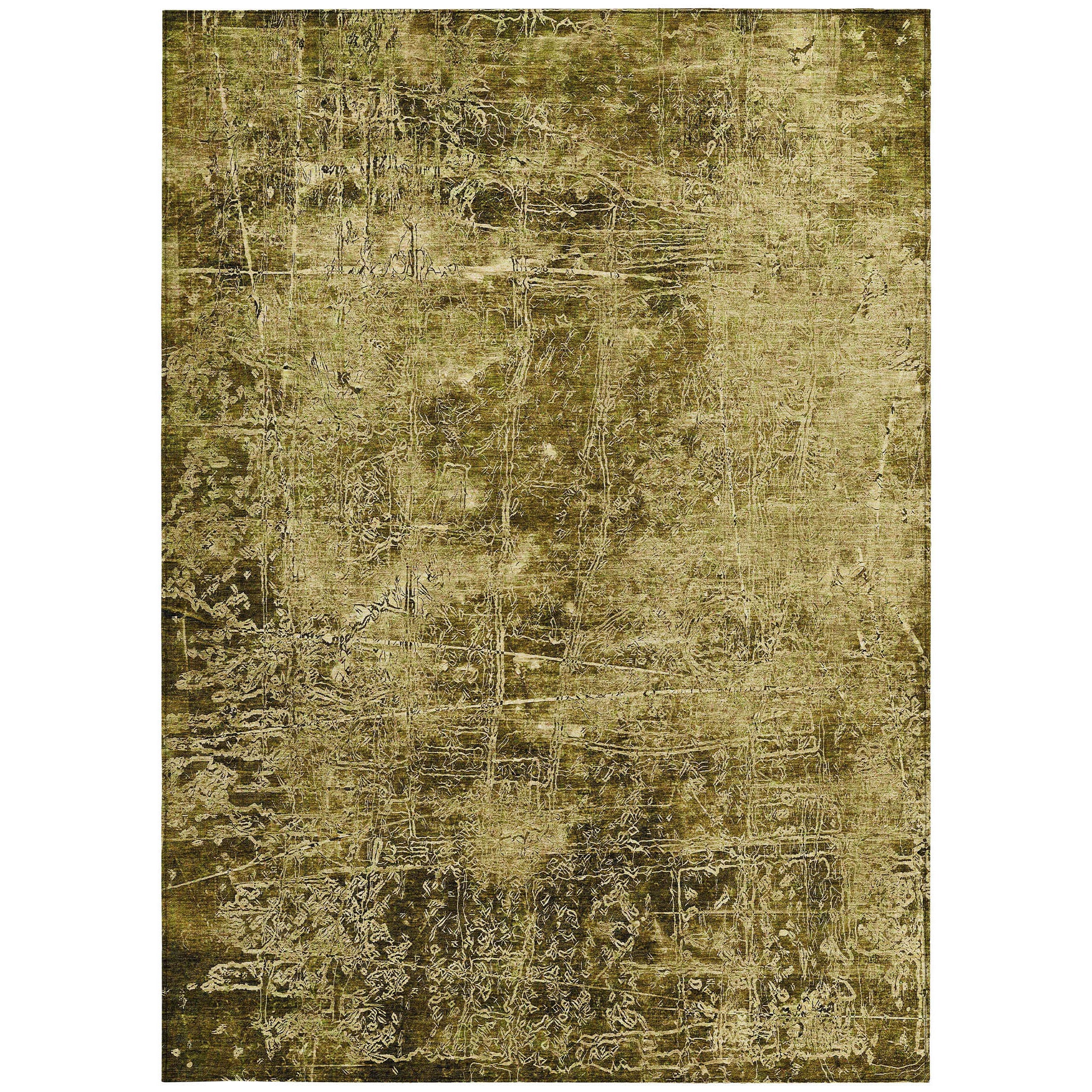 Add some artistry to your room with this 10-foot x 14-foot green abstract washable stain resistant non...