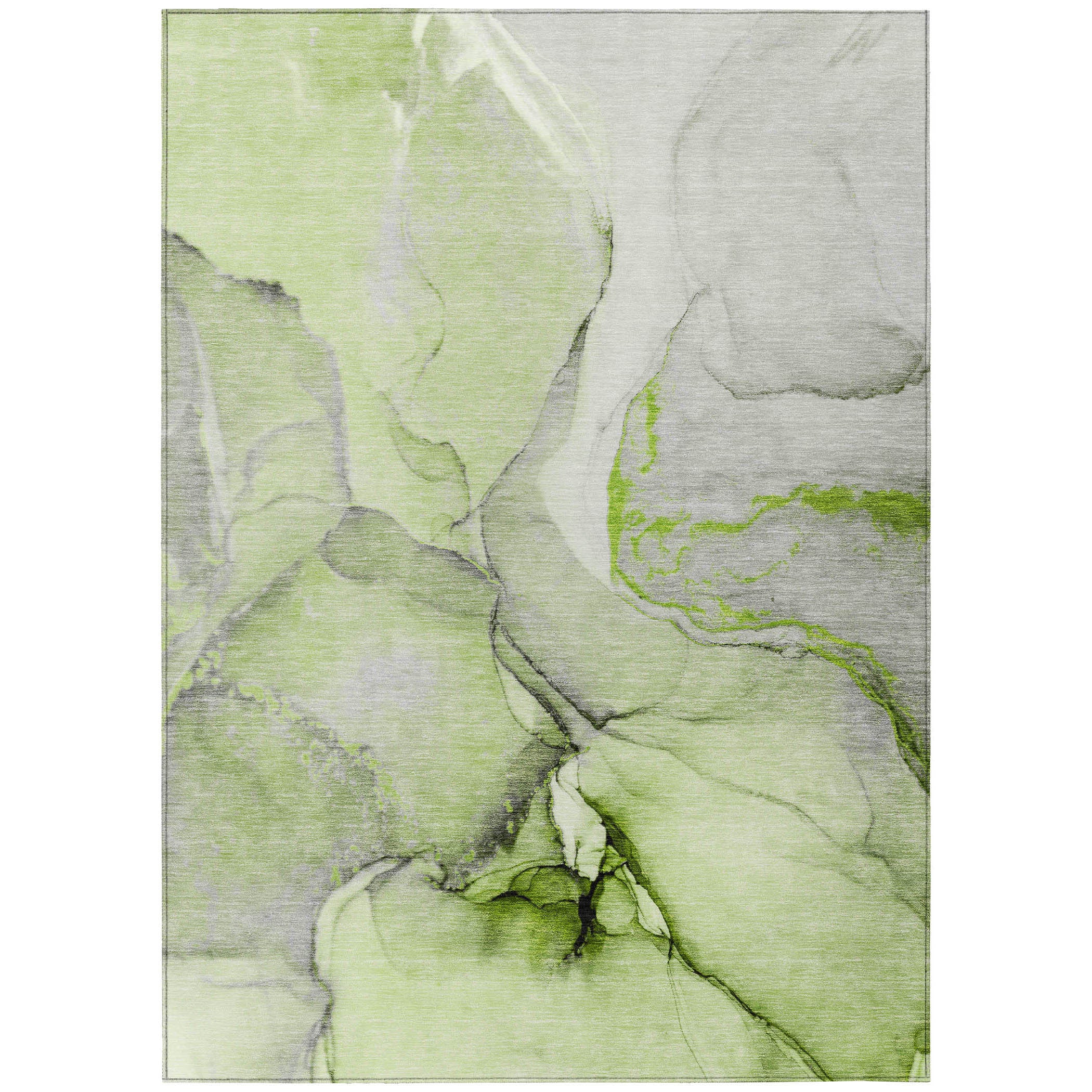 10' X 14' Green Abstract Washable Non Skid Indoor Outdoor Area Rug