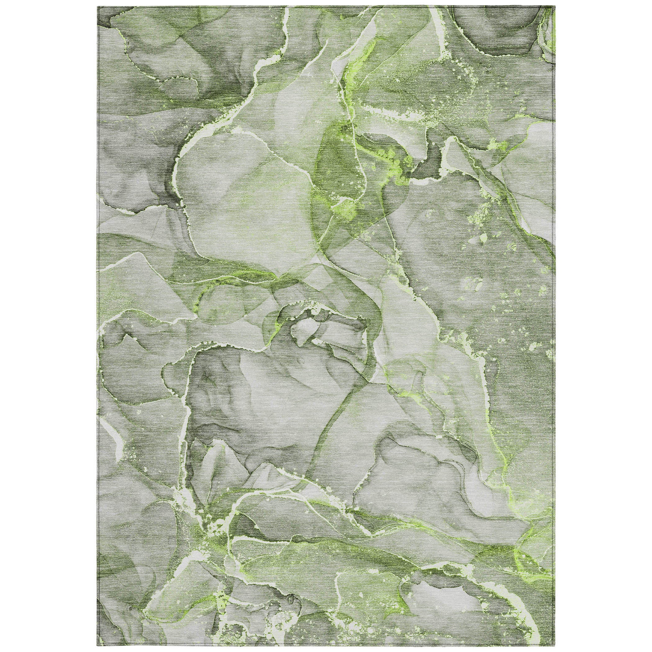 10' X 14' Green Abstract Washable Non Skid Indoor Outdoor Area Rug