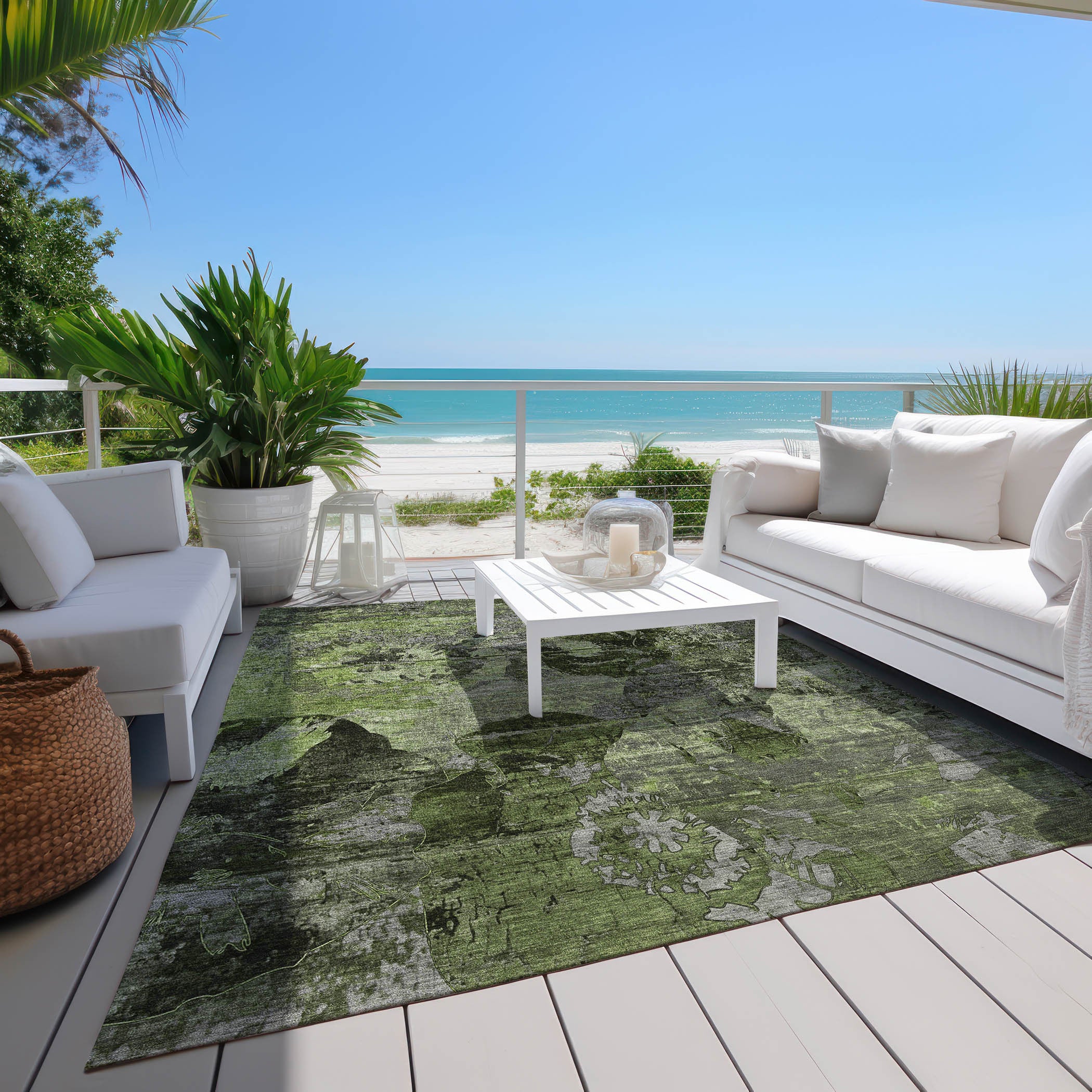 10' X 14' Green and Gray Floral Washable Non Skid Indoor Outdoor Area Rug