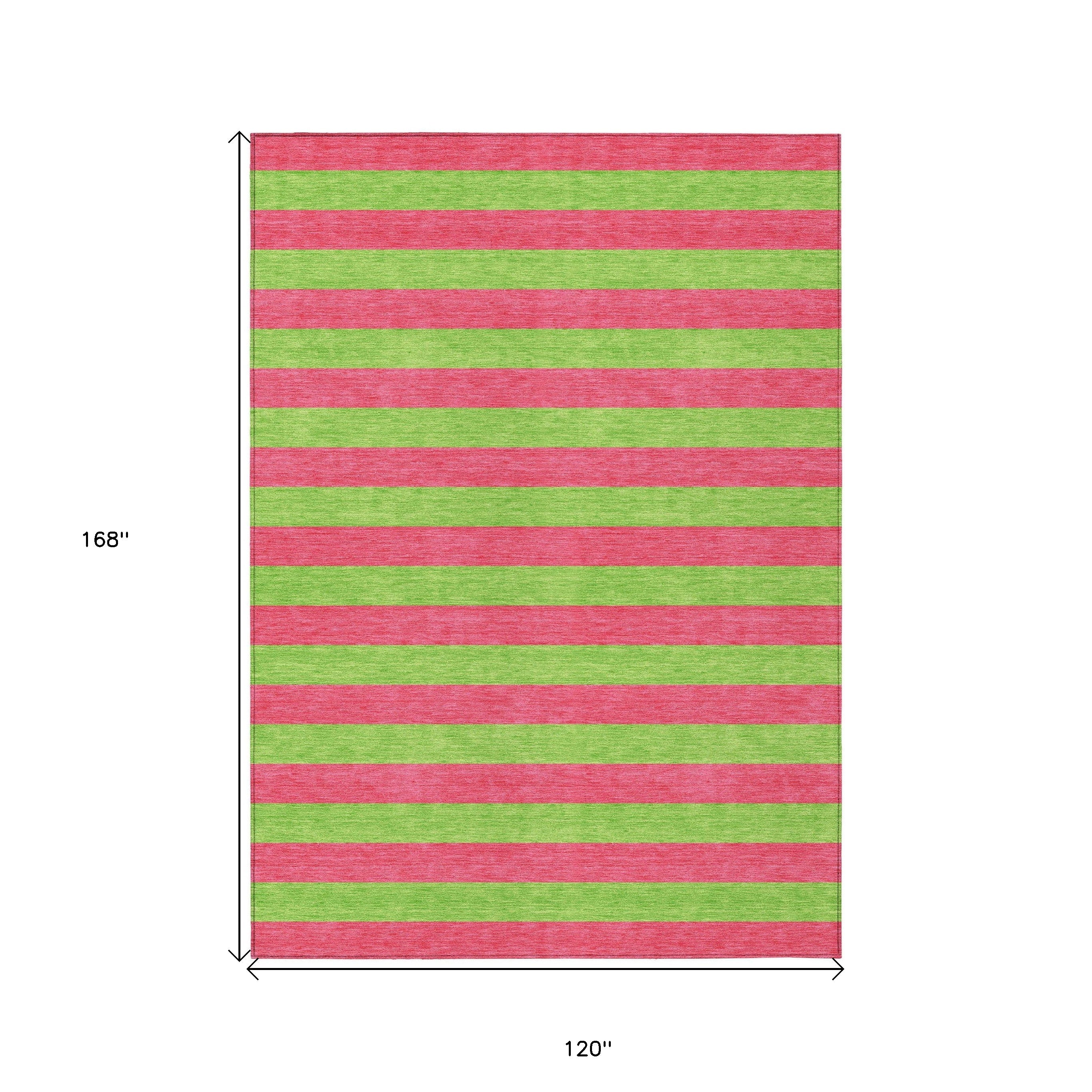 10' X 14' Green and Red Striped Washable Non Skid Indoor Outdoor Area Rug