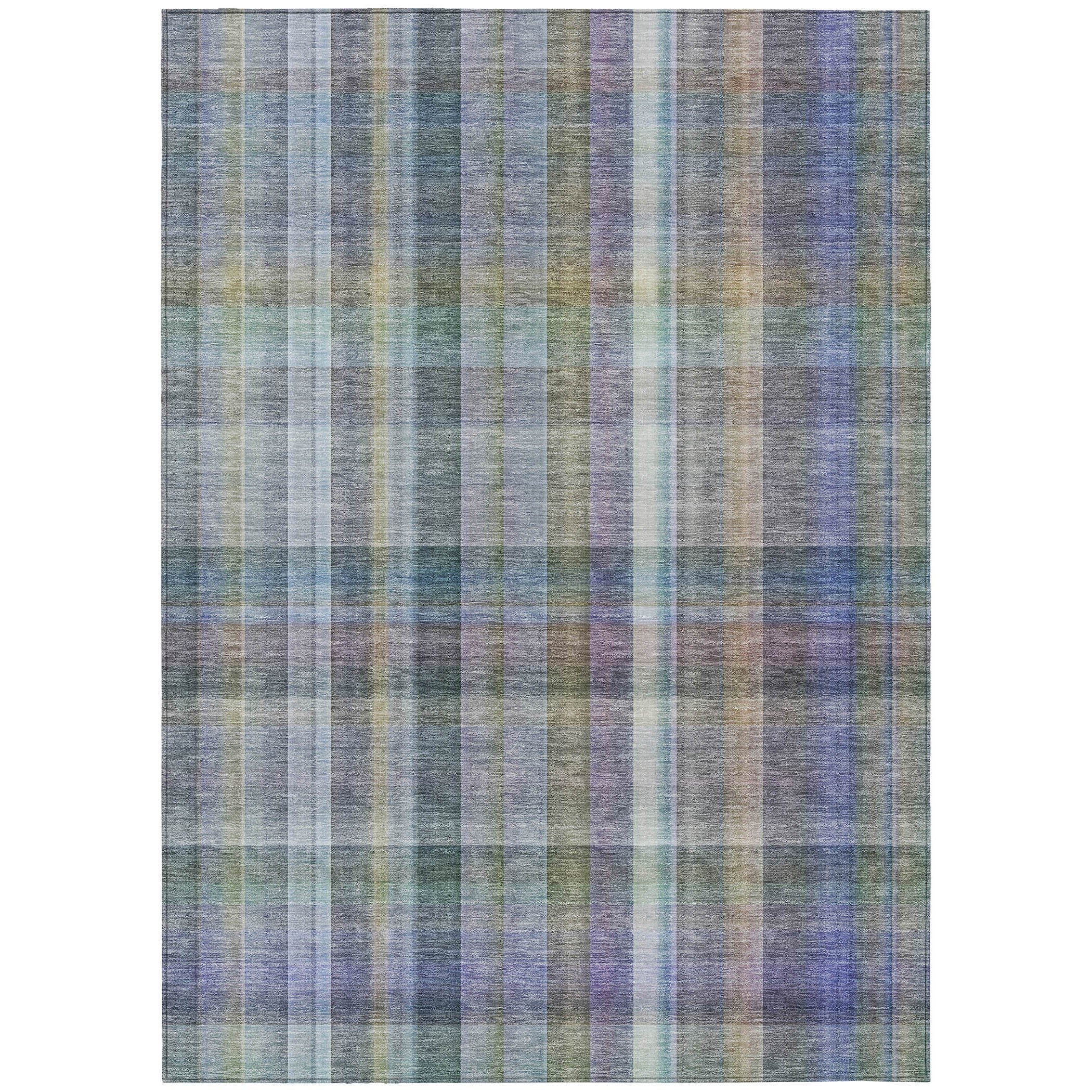 10' X 14' Green Plaid Washable Non Skid Indoor Outdoor Area Rug