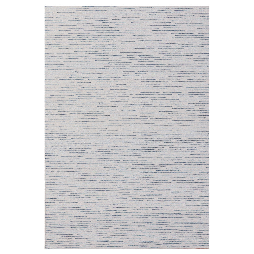 10' x 14' Ivory and Blue Wool Striped Hand Tufted Area Rug