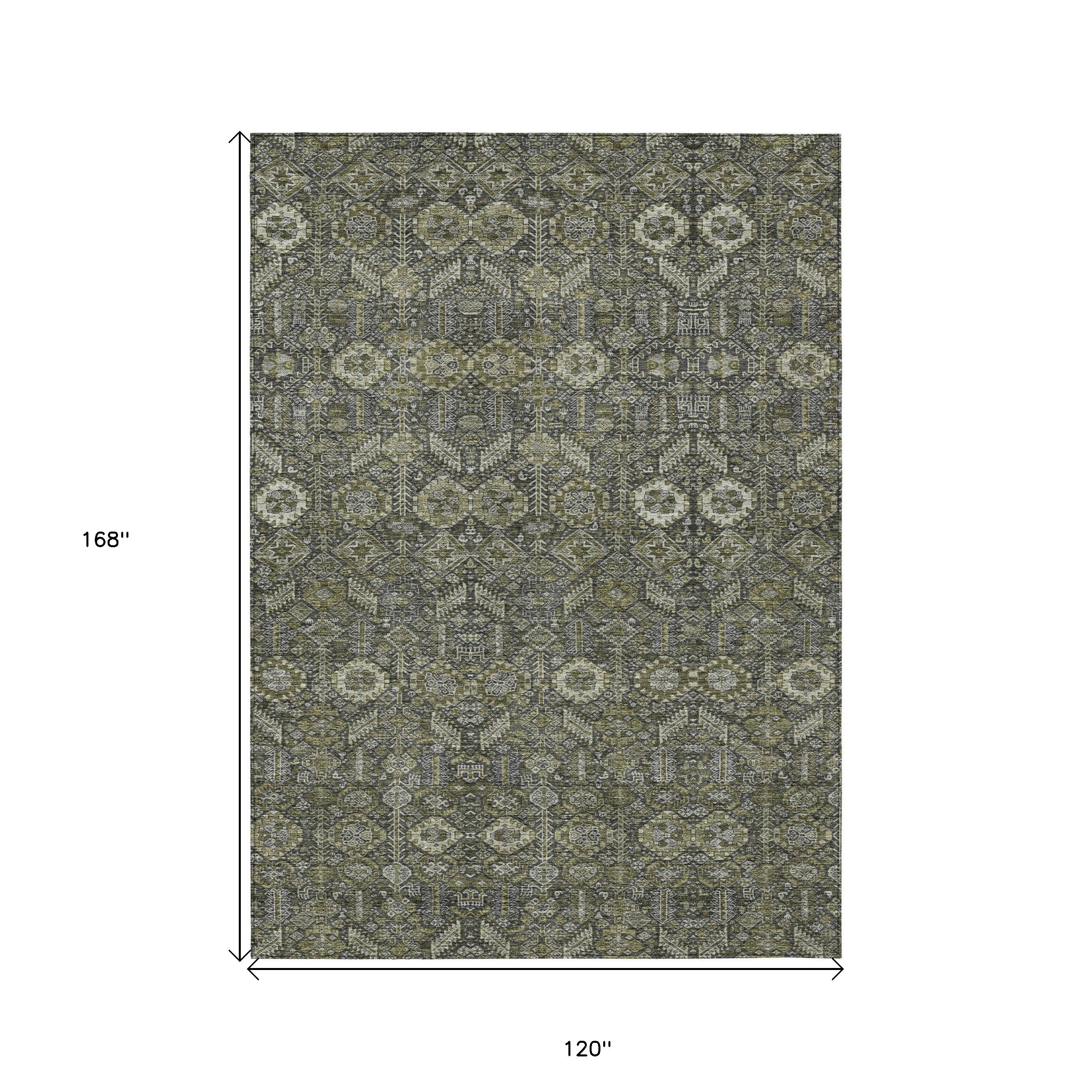 10' X 14' Moss Green and Gray Floral Washable Non Skid Indoor Outdoor Area Rug