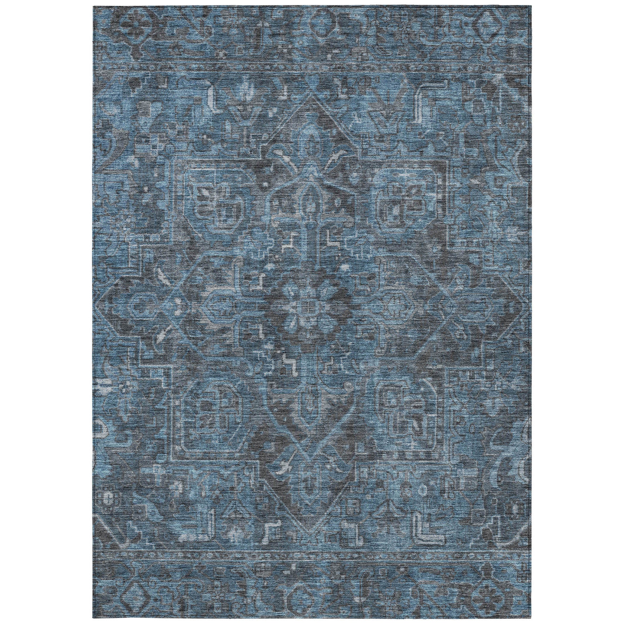 10' X 14' Navy and Black Oriental Washable Non Skid Indoor Outdoor Area Rug