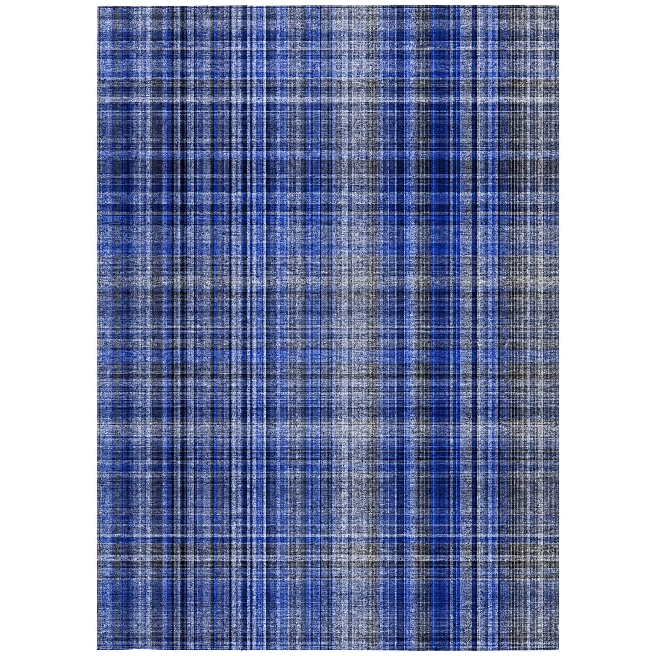 Set an inviting tone in your space with this 10-foot x 14-foot navy blue plaid washable stain...