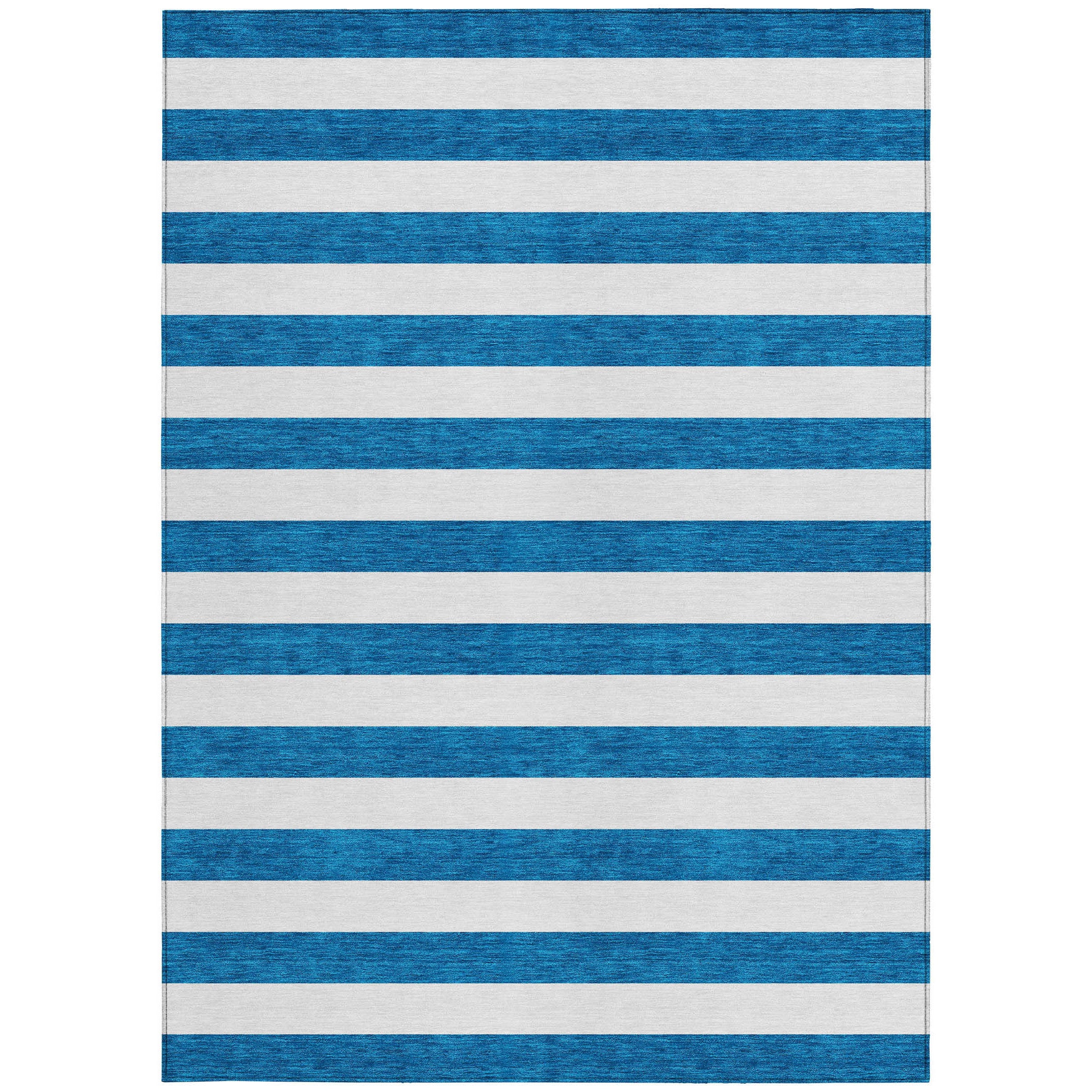Add some artistry to your room with this 10-foot x 14-foot navy blue striped washable stain resistant...