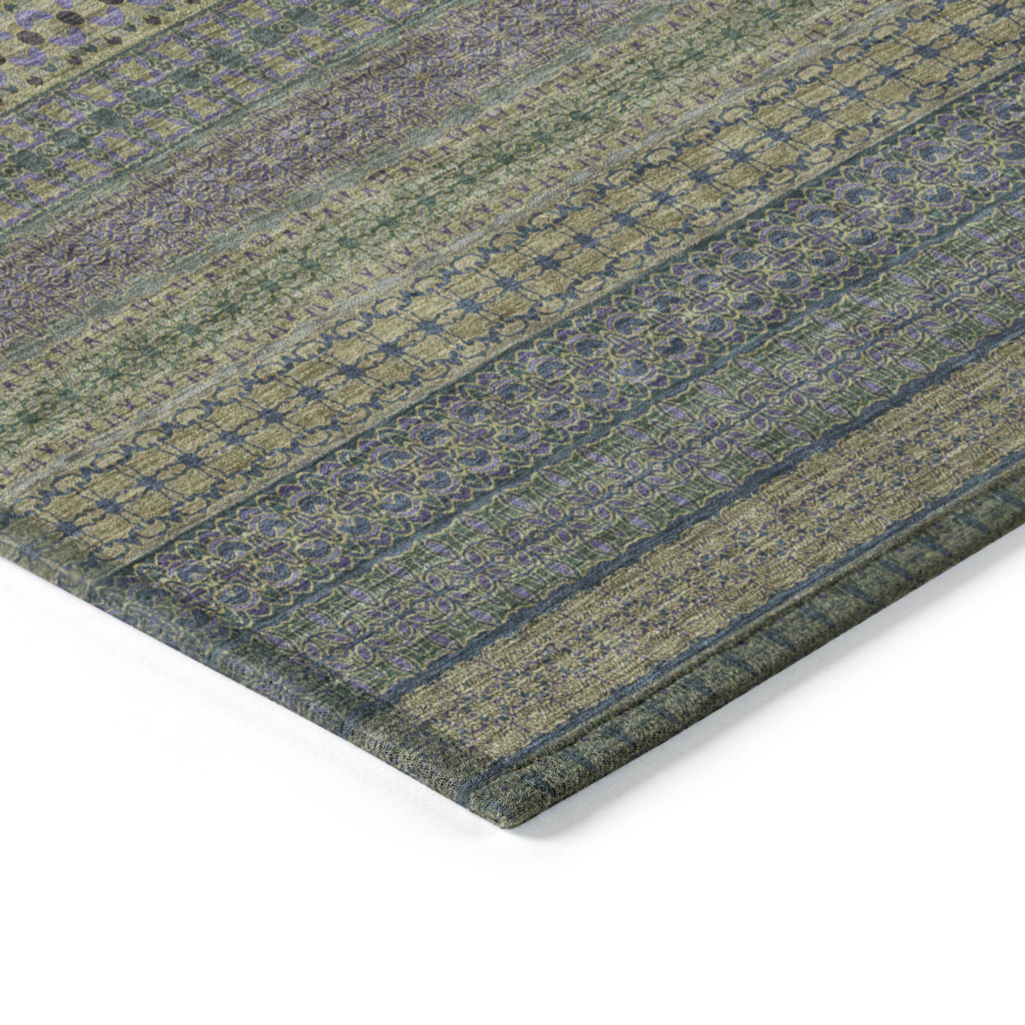 This 10-foot x 14-foot olive green striped washable stain resistant non skid indoor outdoor area rug, is...