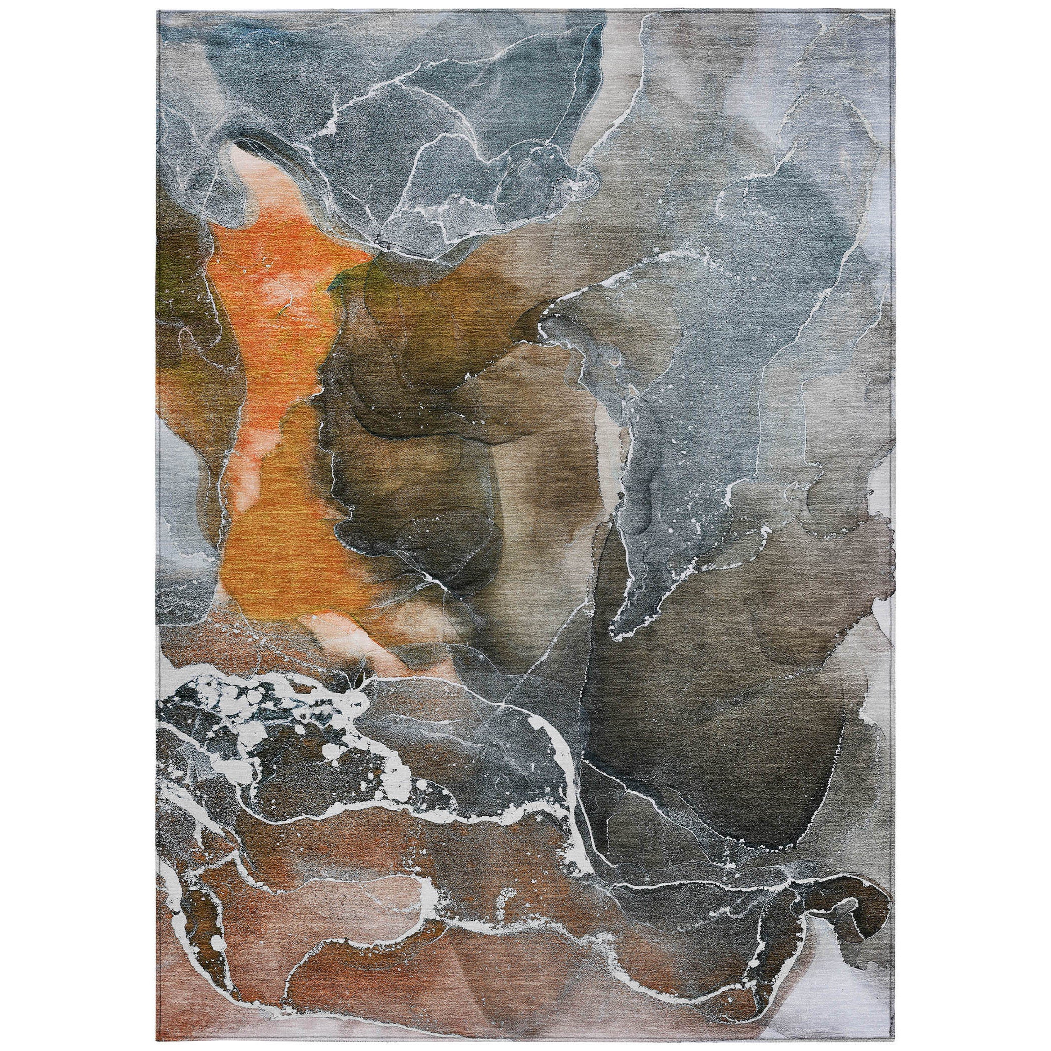 10' X 14' Orange Abstract Washable Non Skid Indoor Outdoor Area Rug