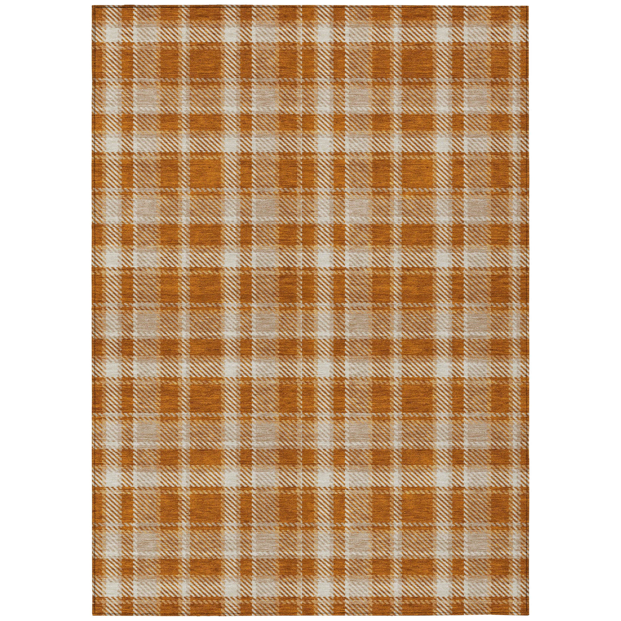 10' X 14' Orange and Ivory Plaid Vacuum or Hose Rinse Non Skid Indoor Outdoor Area Rug
