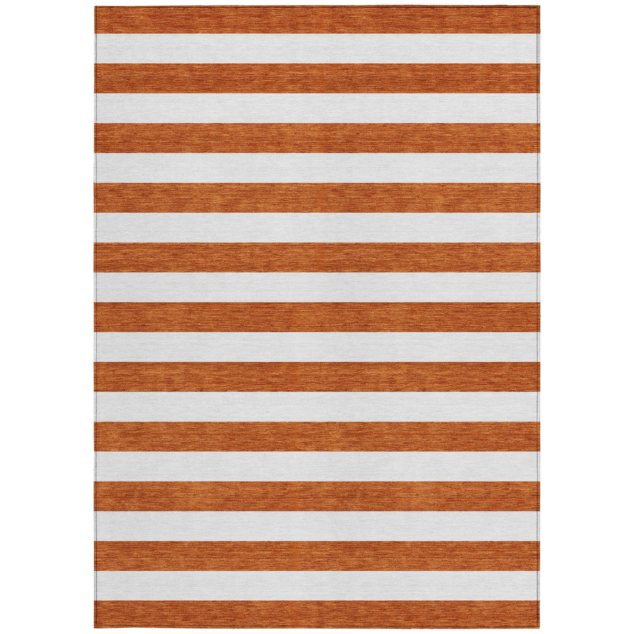 10' X 14' Orange Striped Washable Non Skid Indoor Outdoor Area Rug