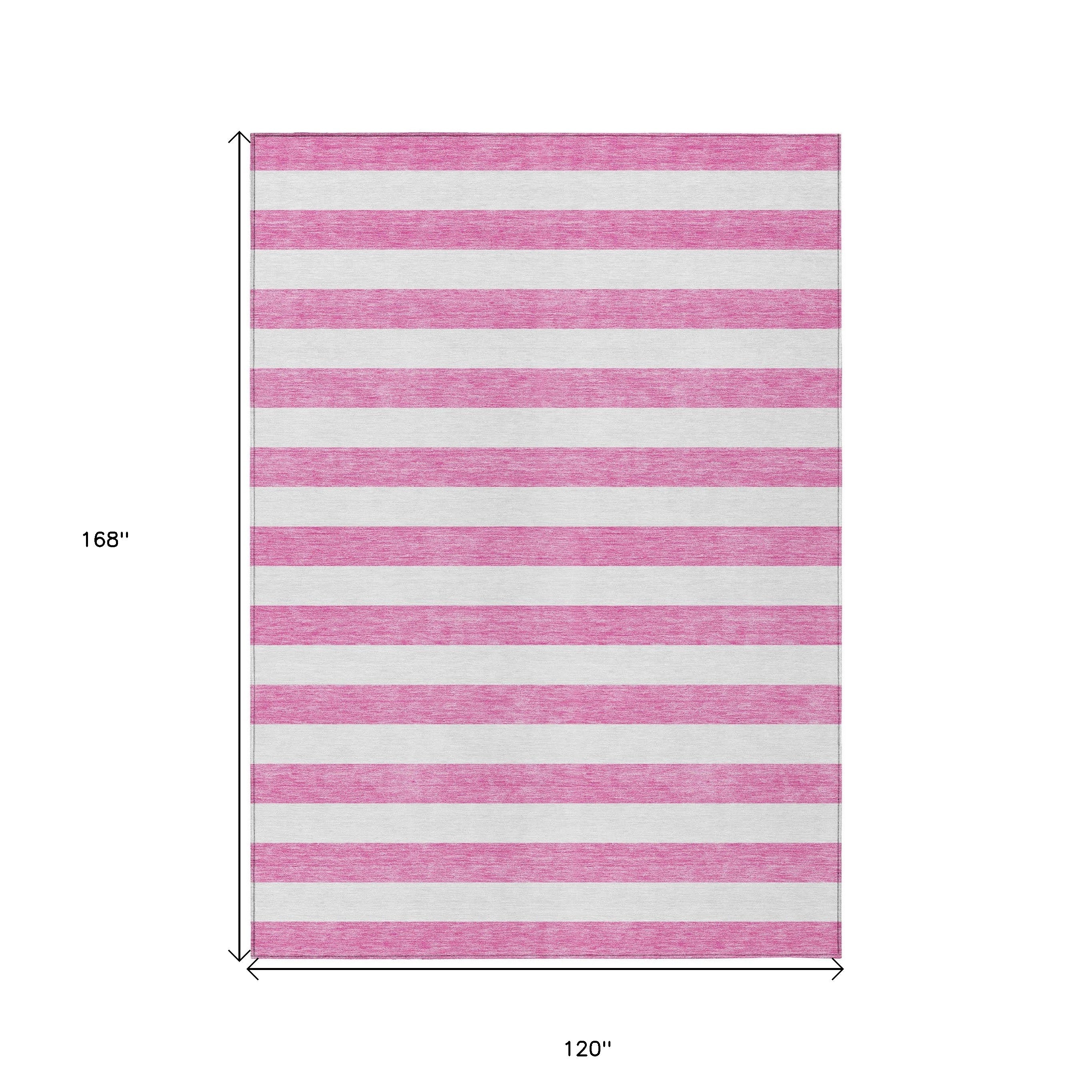 10' X 14' Pink and White Striped Washable Non Skid Indoor Outdoor Area Rug