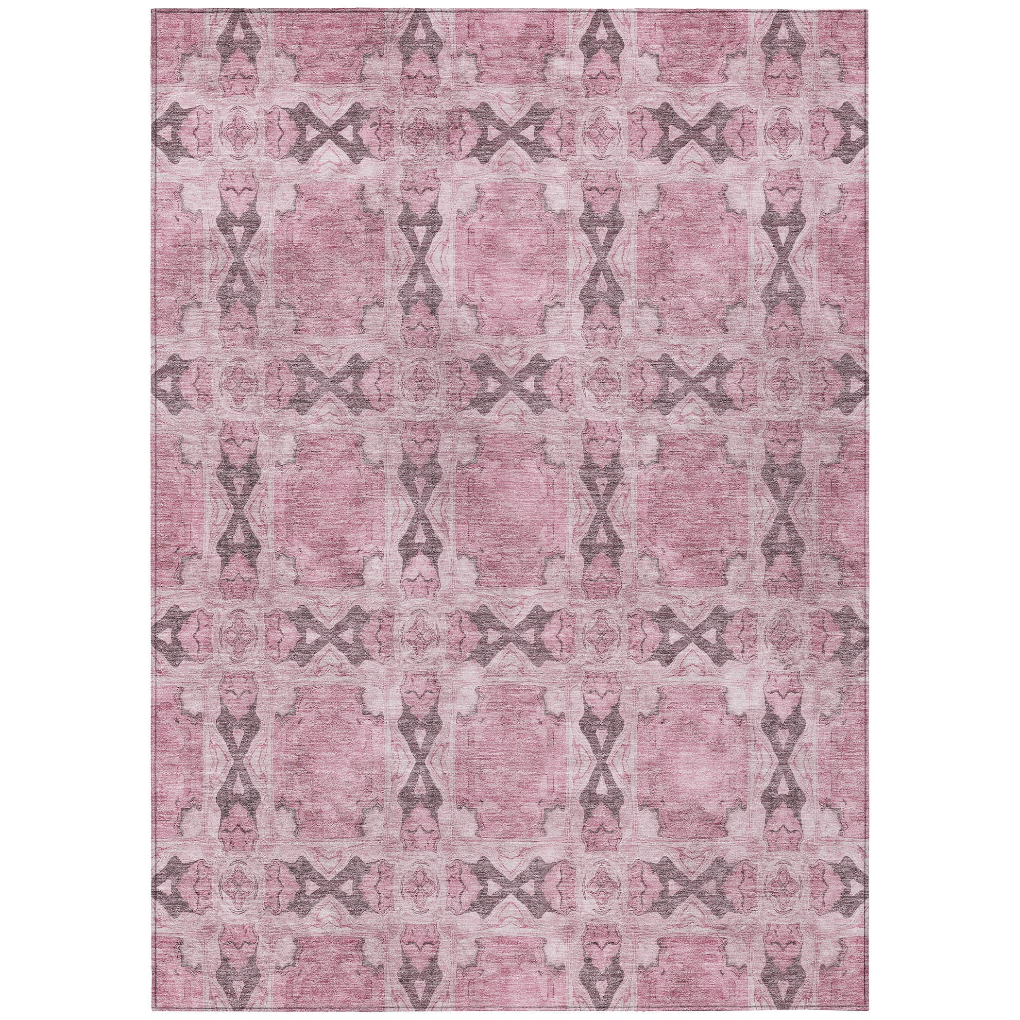 10' X 14' Pink Floral Medallion Washable Non Skid Indoor Outdoor Area Rug