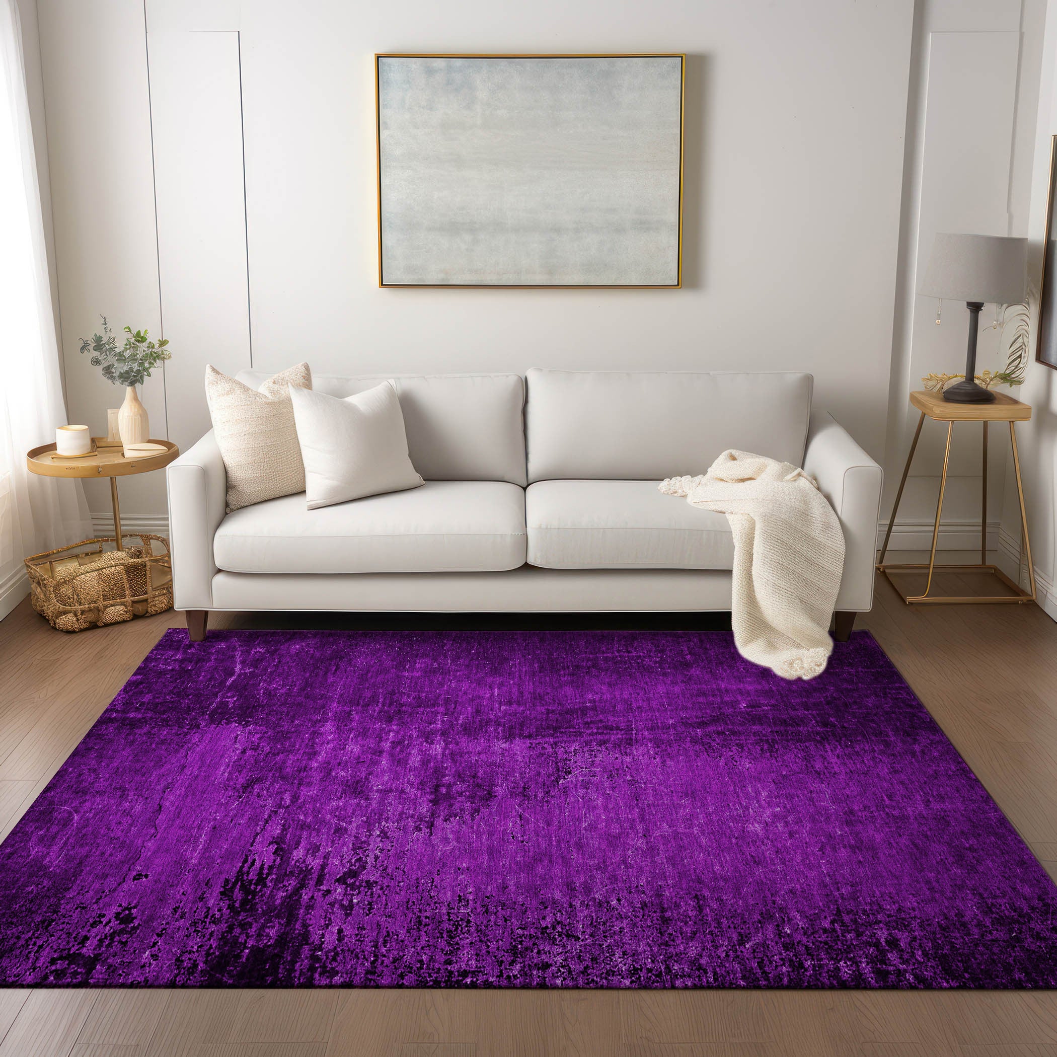 Add some artistry to your room with this 10-foot x 14-foot purple abstract washable stain resistant non...