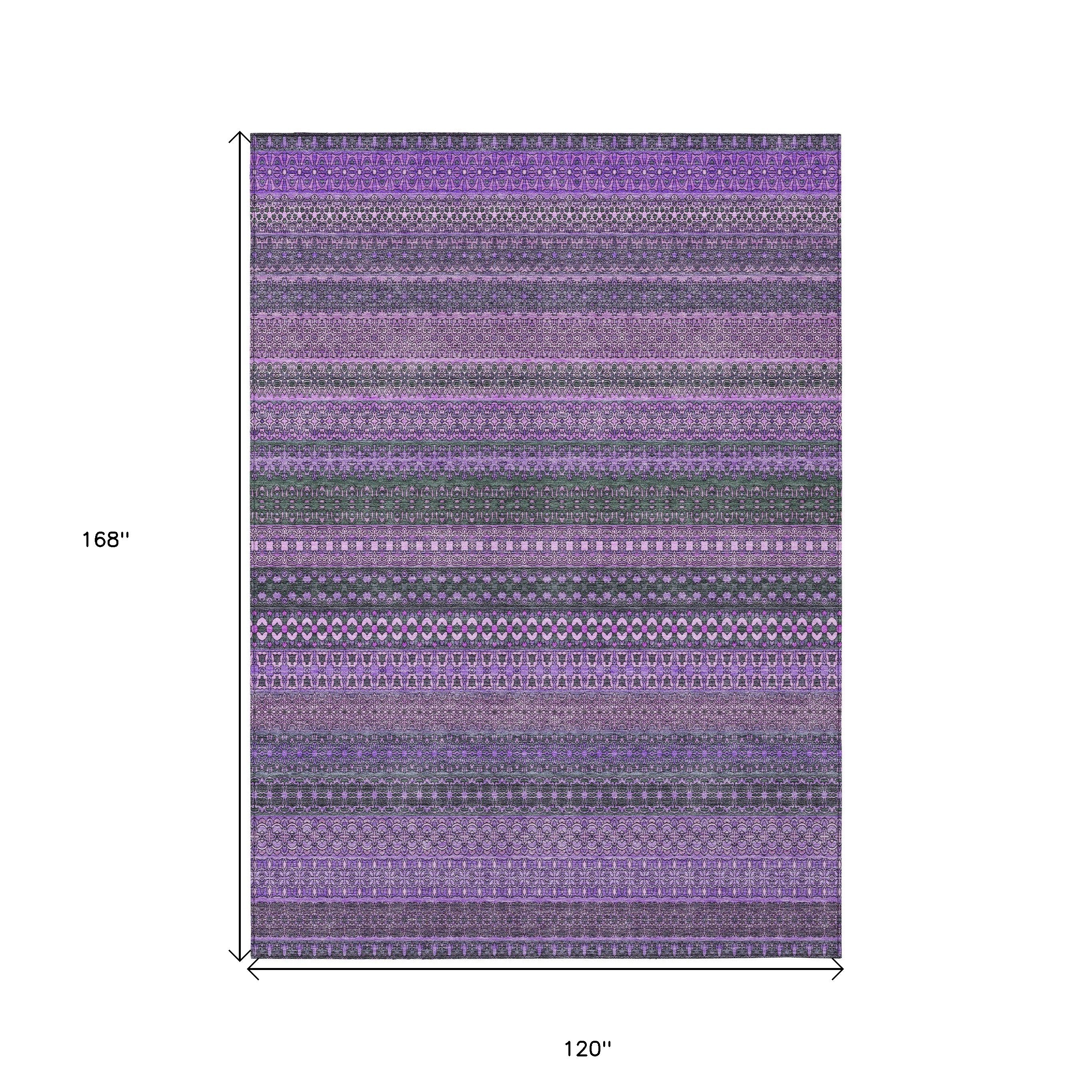10' X 14' Purple Striped Washable Non Skid Indoor Outdoor Area Rug