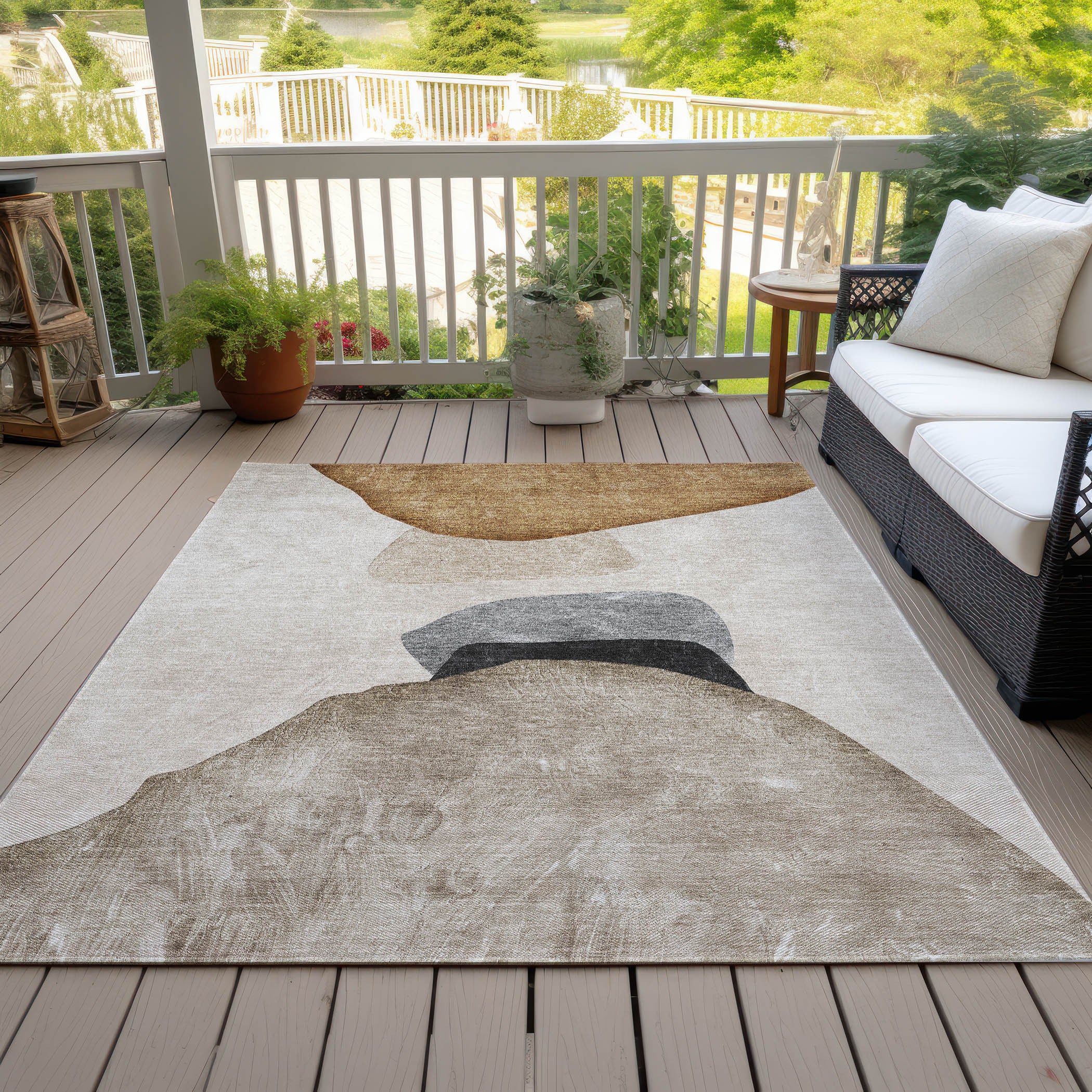 10' X 14' Tan Brown and Gray Abstract Washable Non Skid Indoor Outdoor Area Rug