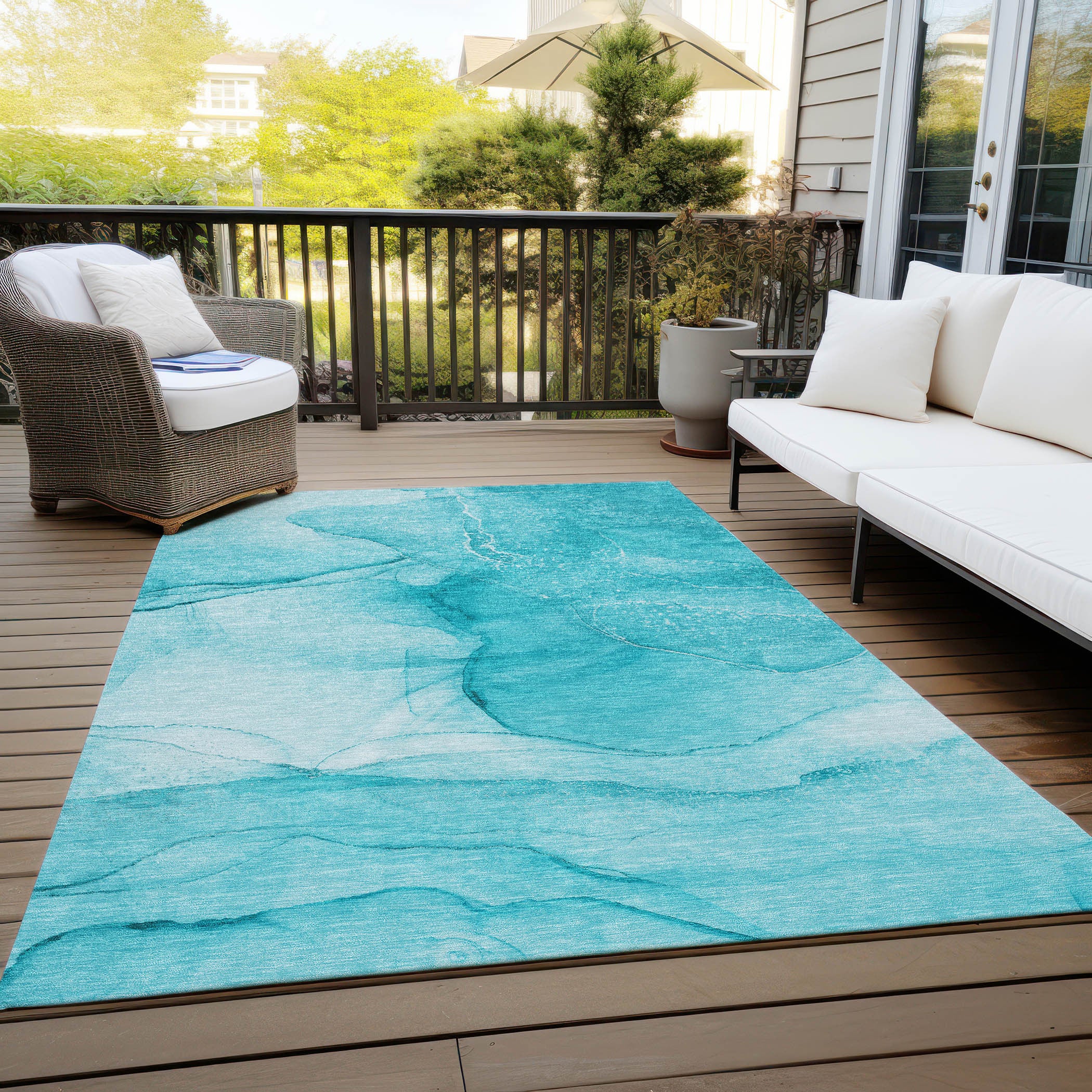 10' X 14' Teal Abstract Washable Non Skid Indoor Outdoor Area Rug