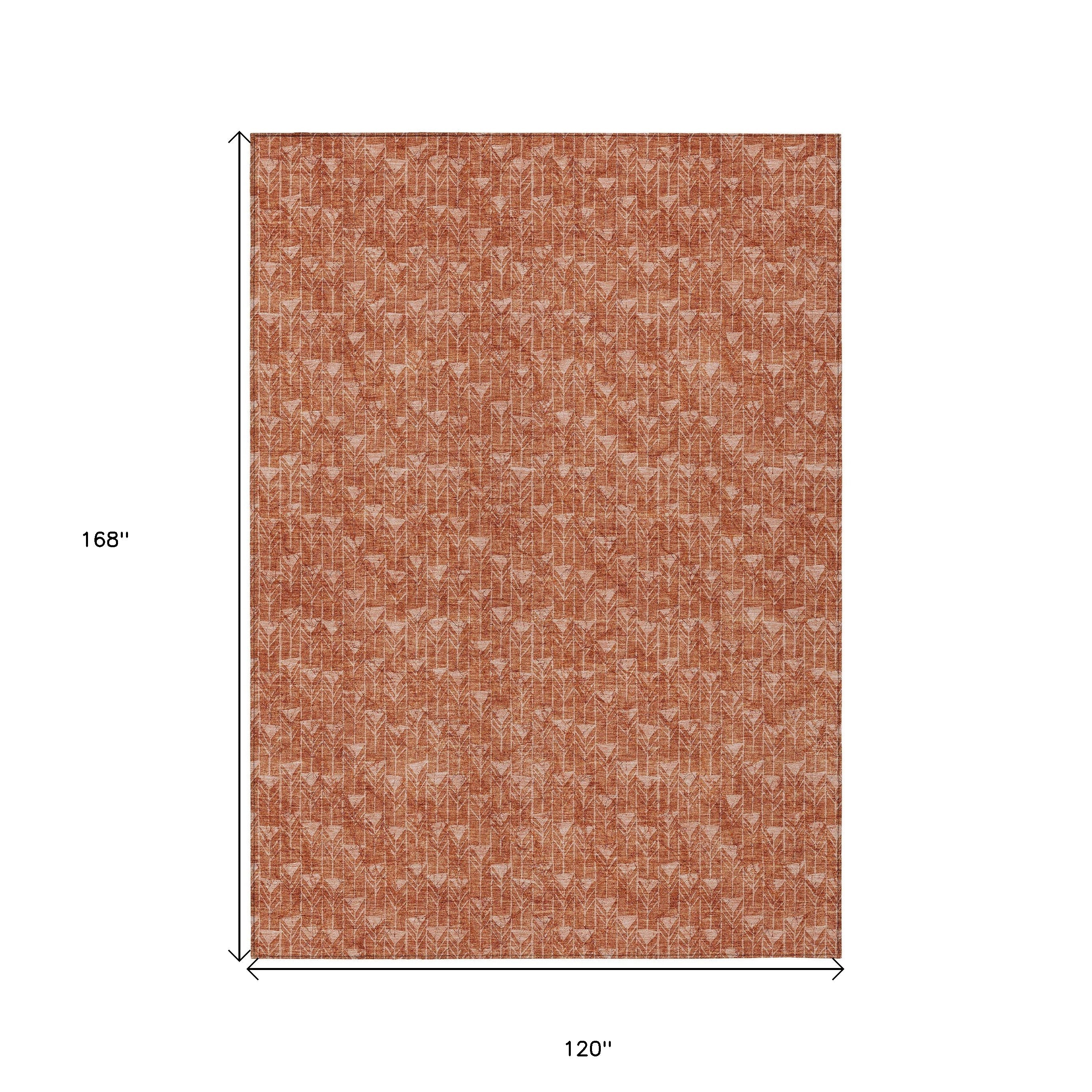 10' X 14' Terra Cotta Geometric Washable Non Skid Indoor Outdoor Area Rug