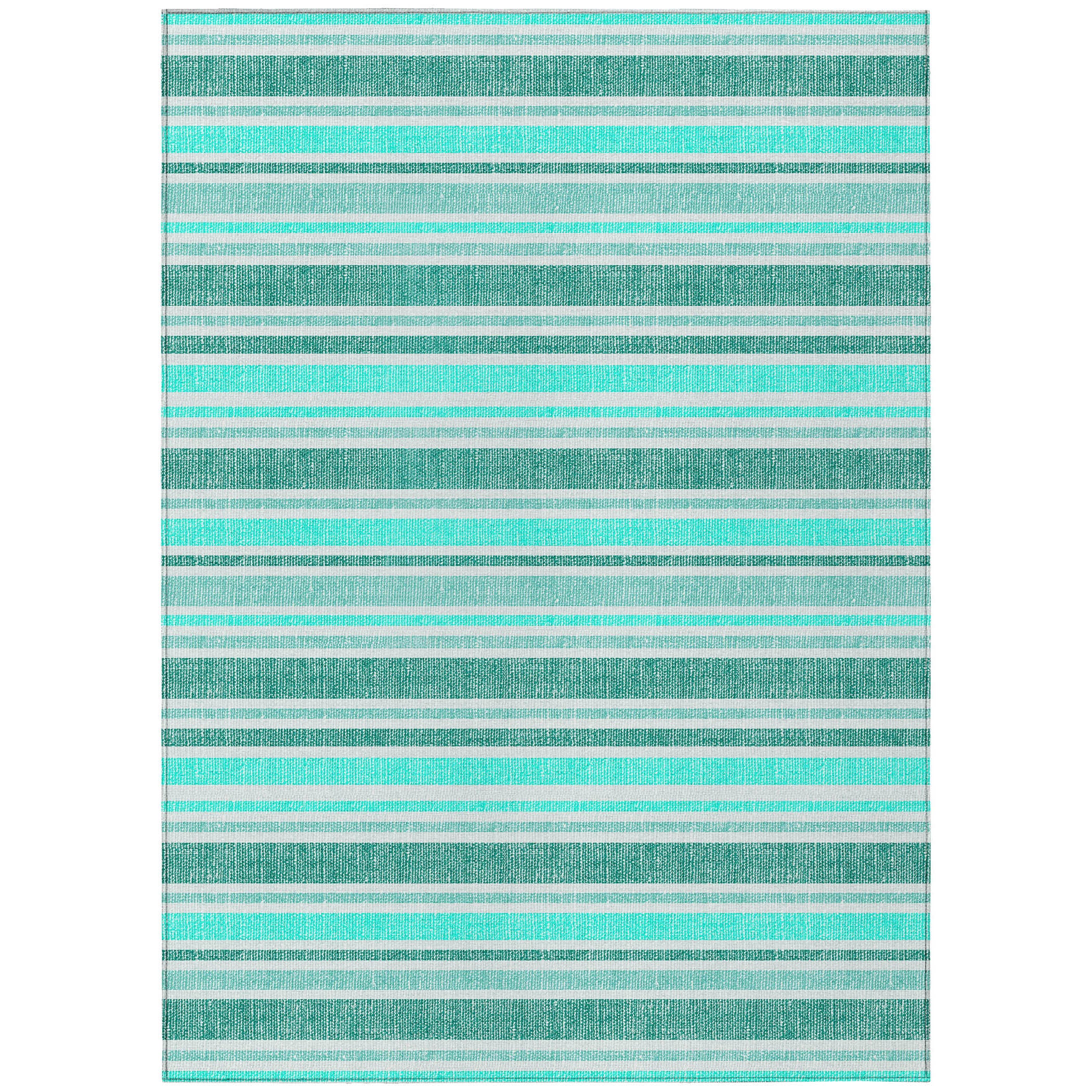 10' X 14' Turquoise Striped Washable Non Skid Indoor Outdoor Area Rug