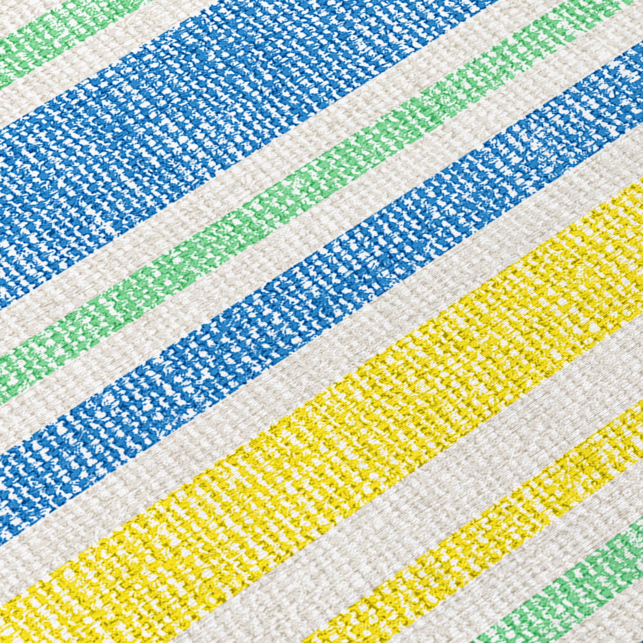 Add some artistry to your room with this 10-foot x 14-foot yellow striped washable stain resistant non...