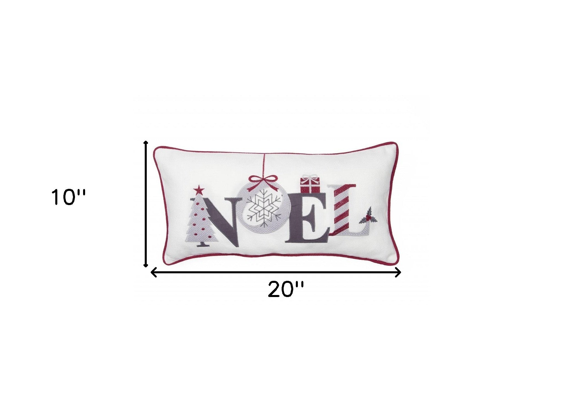 10"x20" Red and Gray Christmas Noel Polyester Zippered Pillow With Embroidery