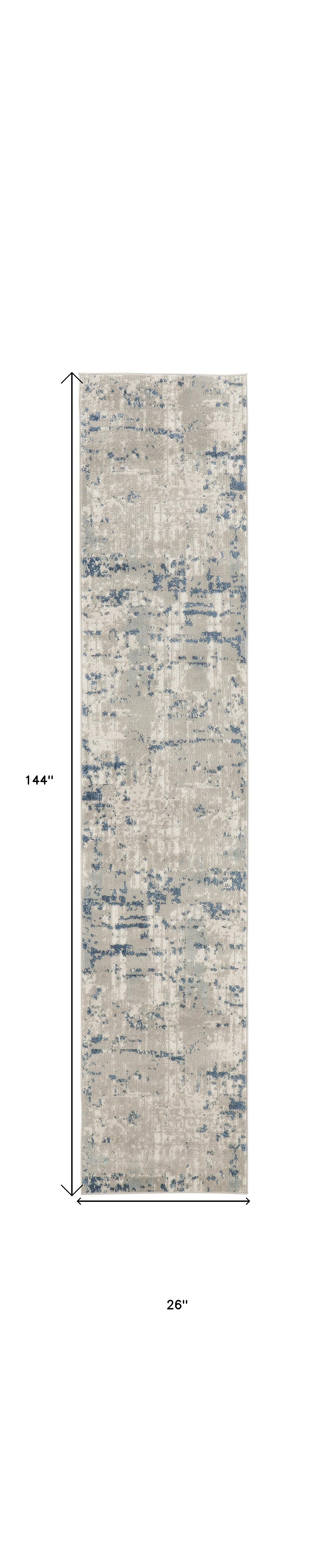 12' Blue and Gray Abstract Power Loom Runner Rug